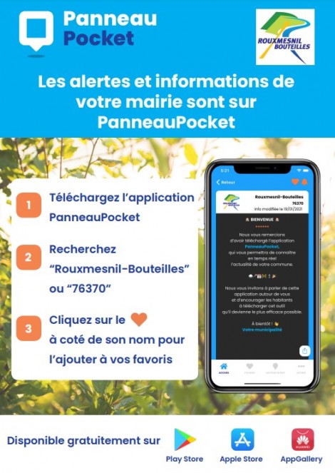 NOUVEAU !! Application en temps réel PanneauPocket » A ce jour 97% des foyers ont téléchargé l’application, cela représente 829 smartphones ou tablettes, dont 639 ont désignés Rouxmesnil-Bouteilles comme “super-favori.” N’hésitez pas à partager les informations contenues dans PanneauPocket avec vos voisins ! La municipalité met à votre disposition une application complètement GRATUITE et SANS PUBLICITÉ. Nous diffuserons sur ce support des informations pertinentes et des alertes urgentes si …