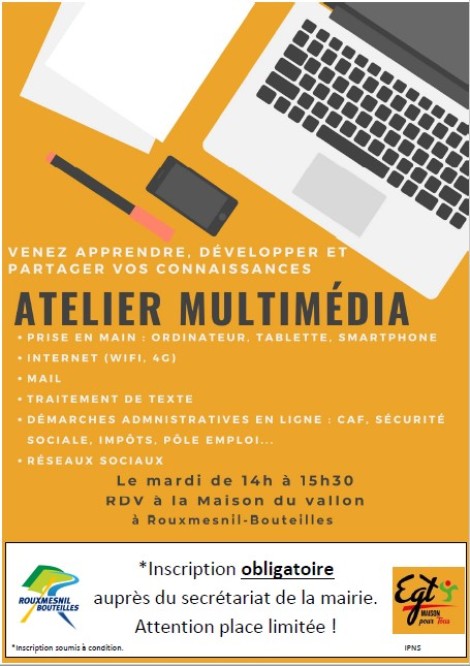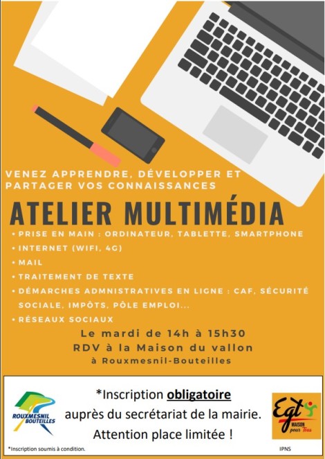 Vous avez besoin d’aide, d’être conseillé, guidé pour apprivoiser l’outil informatique. Rejoignez l’équipe de l’EGT Lundi 8 septembre 2025. Séances « découverte » gratuites Mardis 9 et 16 septembre 2025 de 14h à 15h30 à la Maison du Vallon La municipalité participe financièrement à cet atelier multimédia avec la prise en charge des 65 € de formation pour l’année 2025/ 2026 (→de septembre à fin juin, hors vacances scolaires). Le reste à charge …