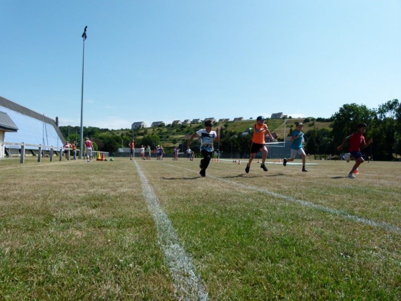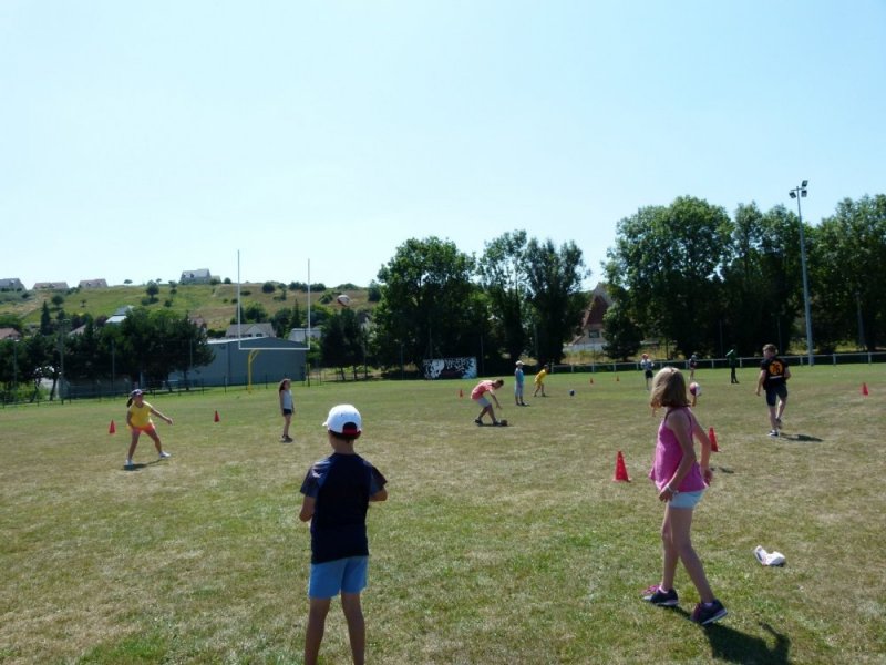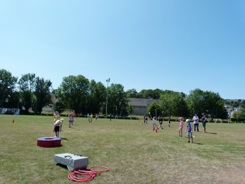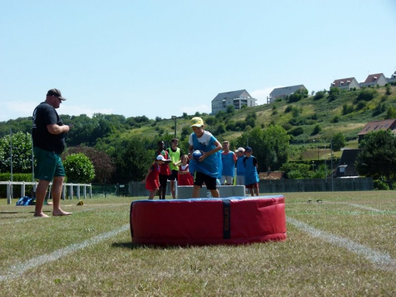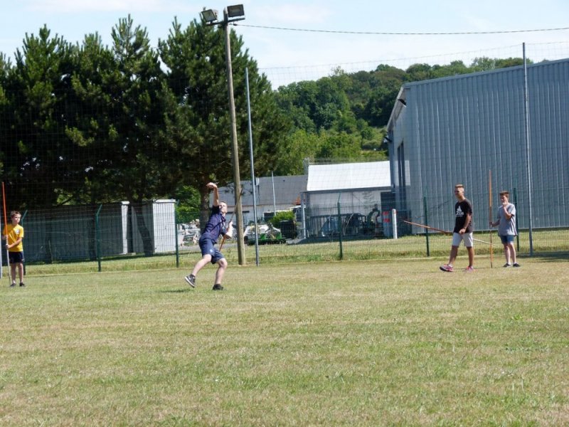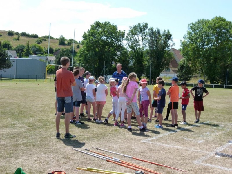 L’athlétisme, proposé par Olivier Bayeux sur le stade de foot, alliait vitesse, endurance et performance, saut de haies, de longueur, chronomètre, lancer de poids, de javelots et pour finir, un relai 4 x 100 m. Les enfants ont fait preuve d’un bon esprit d’équipe, pour cela, ils ont reçu tee-shirts, stylos et porte-clés.