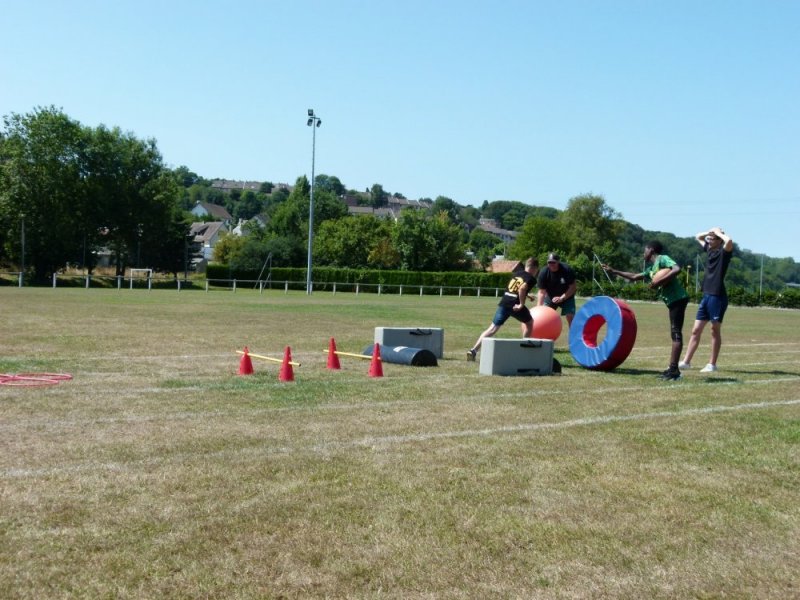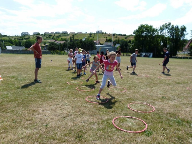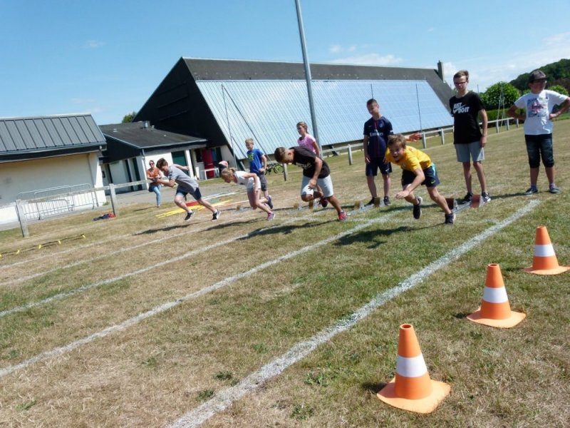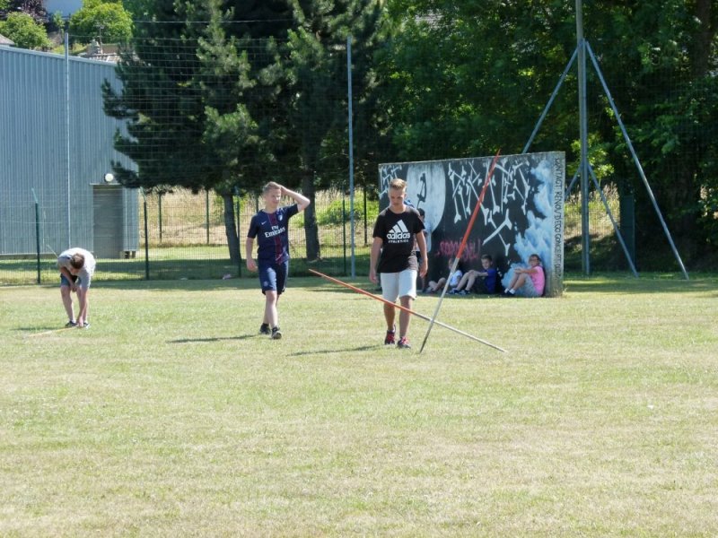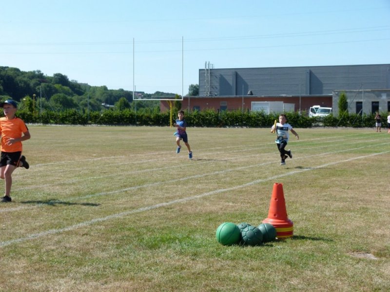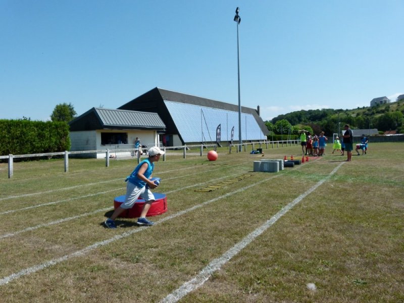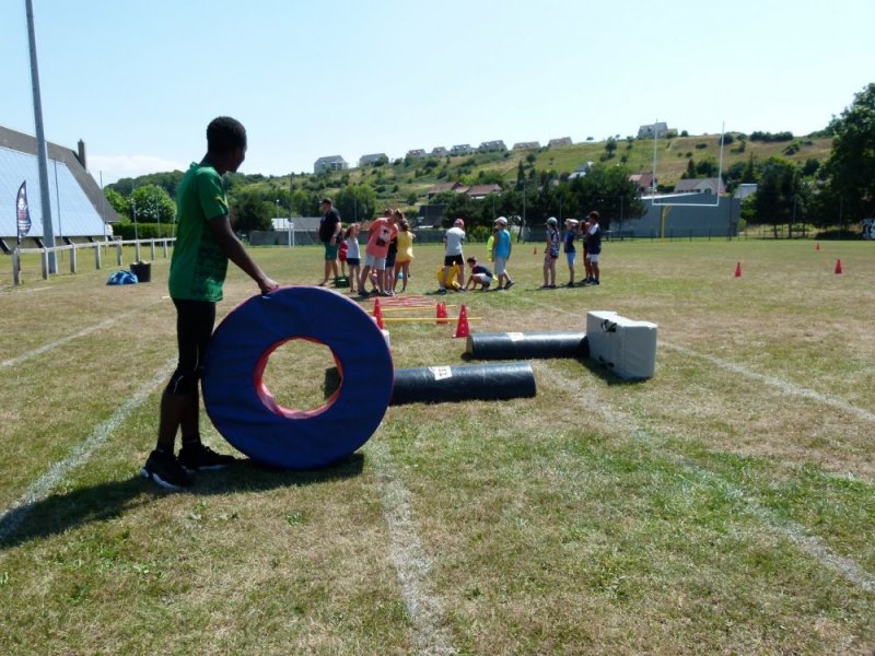 L’athlétisme, proposé par Olivier Bayeux sur le stade de foot, alliait vitesse, endurance et performance, saut de haies, de longueur, chronomètre, lancer de poids, de javelots et pour finir, un relai 4 x 100 m. Les enfants ont fait preuve d’un bon esprit d’équipe, pour cela, ils ont reçu tee-shirts, stylos et porte-clés.