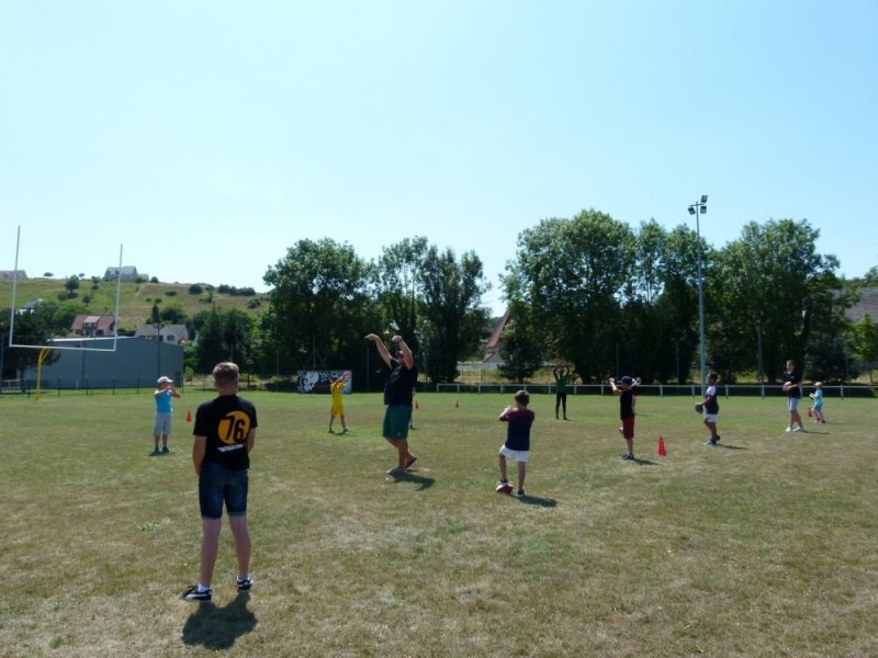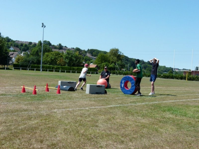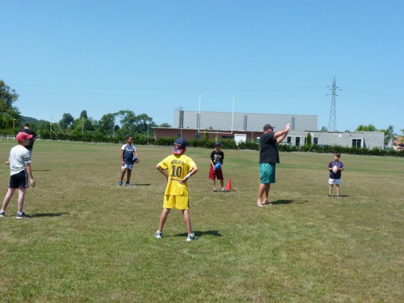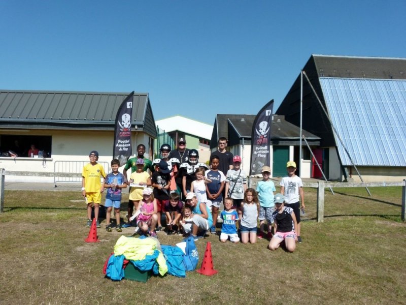 Le flag football, initiation sans contact au football américain, a réuni sur le stade de foot une vingtaine de jeunes, curieux de découvrir les règles d’un sport venu d’outre atlantique. Le club des Pirates sous la responsabilité de Frédéric Jolly et de deux jeunes licenciés, ont abordé le jeu sous forme d’ateliers et de parcours initiatiques. Les filles et les garçons ont fait preuve d’écoute, de concentration et d’un bon esprit d’équipe lors du match final. Pour marquer leur passage, ils ont reçu un autocollant du club.
