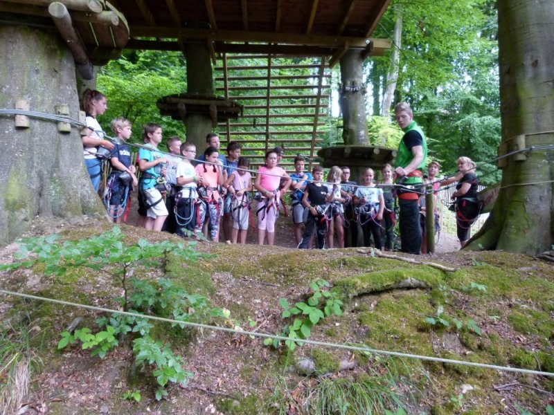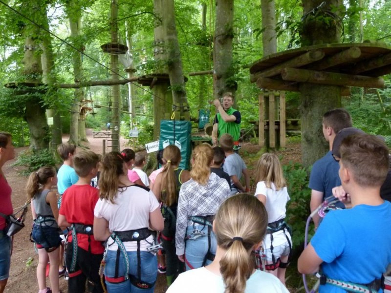 Durant tout le mois de juillet nous avons bénéficié d’une météo très estivale, sous un soleil parfois écrasant !! Lundi 30 juillet, « Les après-midi de juillet 2018 » se sont clôturés à Arb’Aventure à Desnestanville, avec pour invitées surprises, quelques gouttes de pluie rafraîchissantes, mais en aucun cas cela n’est venu perturber l’activité qui s’est poursuivie sous le soleil. Le vertige, les jeunes ne connaissent pas !!! Loin d’être rassasiés, ils en redemandent, plus haut, plus dur, plus périlleux, pour toujours plus de sensations. Les accompagnateurs n’ont pas eu le temps de souffler, ils ont enchaîné tous les parcours sous l’insistance des jeunes. Le budget alloué aux après-midi de juillet, financé par la Municipalité s’élève à 2 200 € pour l’ensemble des animations et sorties. Sans le concours des clubs et des bénévoles, le coût serait multiplié par quatre et la participation des parents serait en conséquence. Aujourd’hui, les sorties représentent 22 €/par enfant en moyenne, lorsque la participation des parents est de 5€.