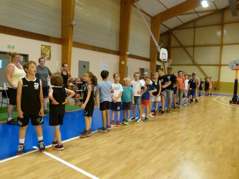 Le club de basketball, était fin prêt pour recevoir la trentaine d’enfants inscrits. Le Président, Bertrand Lamarche, assisté de licenciés bénévoles, ont pour habitude de mettre en place différents ateliers destinés à se familiariser au ballon en mouvement, avec les règles, la technique, l’agilité et l’adresse. Les enfants ont participé avec entrain, encourageant les camarades lors des matchs. Plusieurs d’entre eux avaient de vraies capacités et reviendront sans doute à la rentrée pour tester à nouveau leurs compétences et leur motivation. Pour marquer cet après-midi sportif, une médaille leur a été remise.