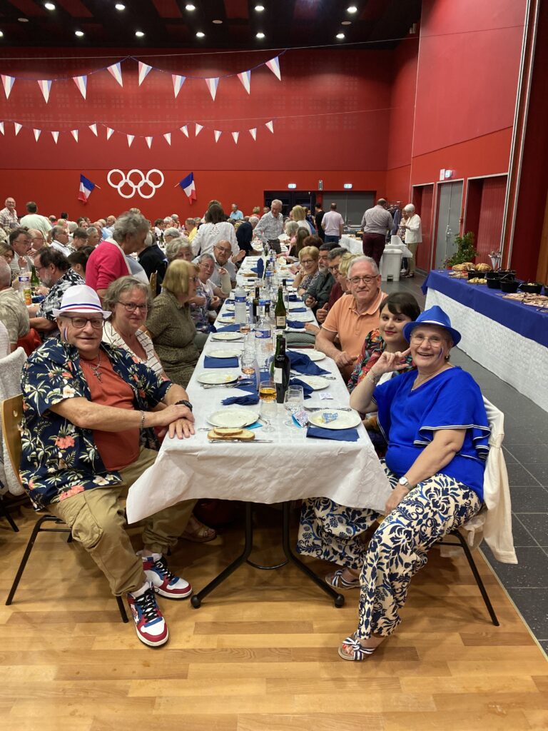 La soirée estivale instaurée en 2009, est toujours plébiscitée par les habitants. Samedi 22 juin, nous étions 314 convives rassemblés salle Corentin Ansquer pour une soirée de fête aux couleurs de la France, en soutien à nos athlètes qui concourront aux Jeux olympiques cet été. Ce repas organisé par les élus, demande plusieurs mois de préparation, pour le choix de l’animation musicale, le traiteur, les boissons et la décoration.