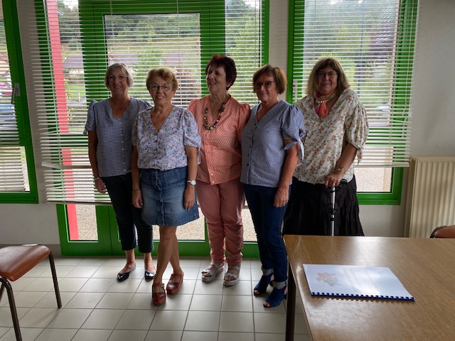 Néanmoins, il a été programmé pour les adhérentes qui le souhaitaient une cession couture le 21 juillet 2022 pour coudre un projet commun. 7 ont répondu et elles ont cousu une blouse. Celle-ci n’a pu être terminée et le jeudi 18 août 2021, nous avons finalisé.