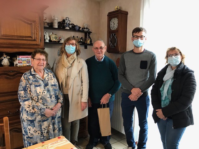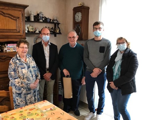 Puisque les doyens n’ont pas pu venir à nous, les élus ont fait la démarche de se déplacer. Jeudi 1 octobre 2020, M. Maurice SAVOYE, né le 13 avril 1934, domicilié Résidence Le Balcon et Mme Odette SIOUR, née le 19 juillet 1922, domiciliée Résidence le Coteau, ont reçu champagne et bouquet de fleurs, accompagnés d’un peu de chaleur humaine, venant du maire, Jean-Claude GROUT, de Marie-Laure DELAHAYE, adjointe en charge des aînés, de conseillers municipaux en la personne de Dominique CATEL et Jonathan DESGROISILLES. Souhaitons que les rendez-vous de 2021, puissent avoir lieu dans de meilleures conditions.