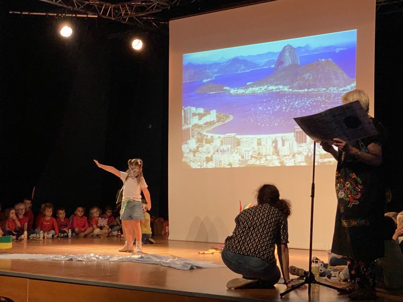 La mascotte, en l’occurrence « un loup », héroïne de ce conte, est partie de Dieppe, pour aller en Angleterre, puis au Brésil, l’Australie et enfin la Chine. Il nous a offert un très beau voyage coloré dans ces pays, tous très différents de par leur culture, leur folklore, leurs traditions et leur façon de vivre.