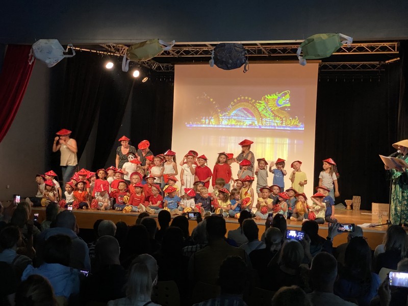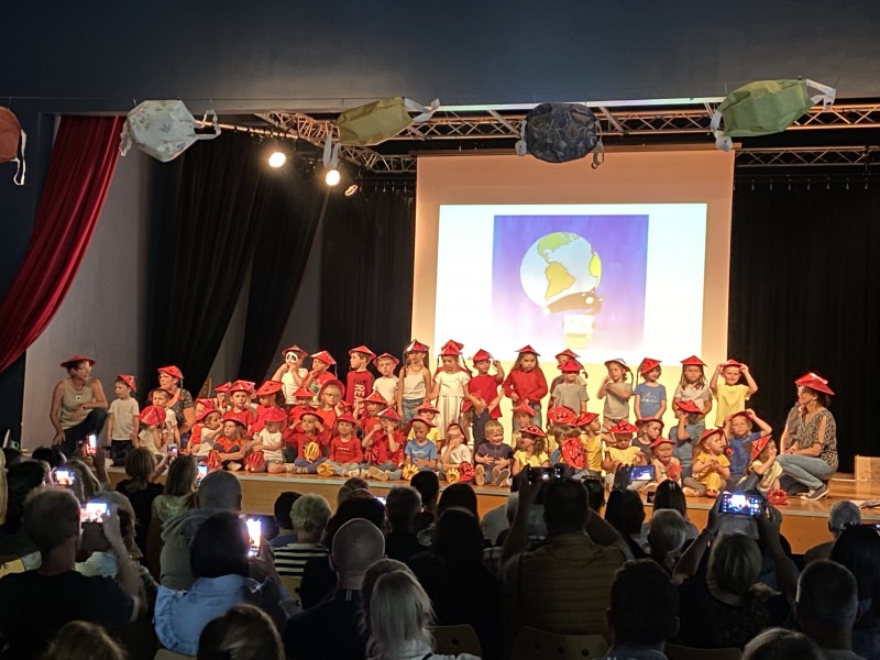 En ce début d’après-midi du mardi 21 Juin, c’était la première fois que Monsieur le Maire, Mme Artur, adjointe commission scolaire et Mme Delahaye, adjointe, assistaient à un spectacle réalisé uniquement par nos petits élèves de l’école maternelle « Les Farfadets ».