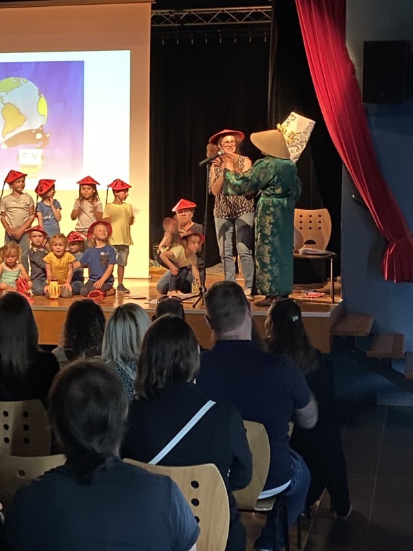 Pour nos jeunes élèves, qui se sont appropriés la belle histoire, cette représentation est le résultat de 11 séances de travail, sous la houlette de Madame Anne Marchand, conteuse, avec l’aide des enseignantes et des ATSEM. Débutées en septembre 2021, elles se sont terminées le 7 juin. Pour permettre la réalisation de ce projet d’école, dont le coût est élevé (3542€), la mairie a participé à hauteur de 1500€. Félicitations et merci à tous ces jeunes enfants qui nous ont fait vivre à 100 à l’heure.