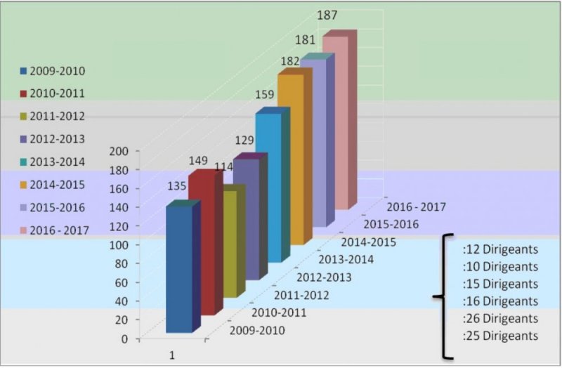 Les charges pour 2016/2017 s’élèvent à 31 771 €, en recette le budget est de 34 231€, avec un excédent de 2 460€. Subvention de la mairie 5 742€, du département 1 855€, licences 11 189€ (reste au club 2 358€), sponsors 2 933€, tournoi, arbre de noël, foire à tout et soirée 2 724€……
