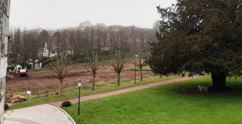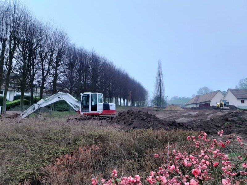 Les travaux de modification du centre bourg se poursuivent…..Pour palier aux problèmes de stationnement aux abords des écoles et dans l’objectif des futurs logements et commerces à venir, la municipalité aménage le parc du Prieuré en parking arboré de 49 places. Le terrassement est en cours…. Le coût est de 280 000 €. Dans la continuité de cet aménagement, un sens giratoire remplacera les feux tricolores, à l’intersection de la rue du Champ de Courses et de la rue du Vallon.