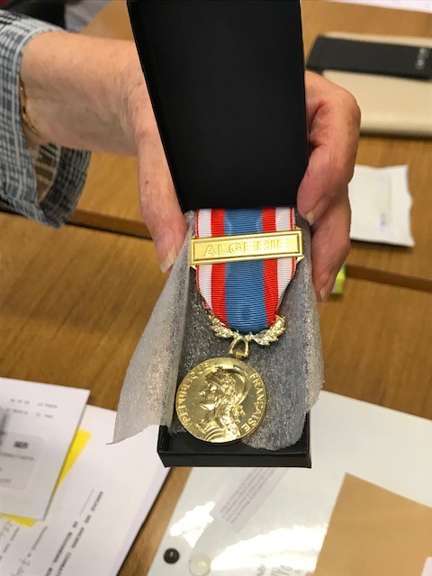IMG_0526 Lors de la réunion du lundi 28 septembre 2020, les membres du bureau de l’Amicale des Anciens Combattants ont remis la médaille de la guerre d’Algérie à l’un des leurs. Alain VANSTABEL est un homme discret, cette demande de médaille est avant tout pour sa famille. Sous l’insistance de son épouse, Alain constitue un dossier de son parcours militaire, pour laisser en héritage à ses descendants un témoignage de son histoire, de l’histoire de la France…. Moyen si l’en est de se libérer des douleurs profondes, survivant meurtri, témoin d’une guerre sans pitié.