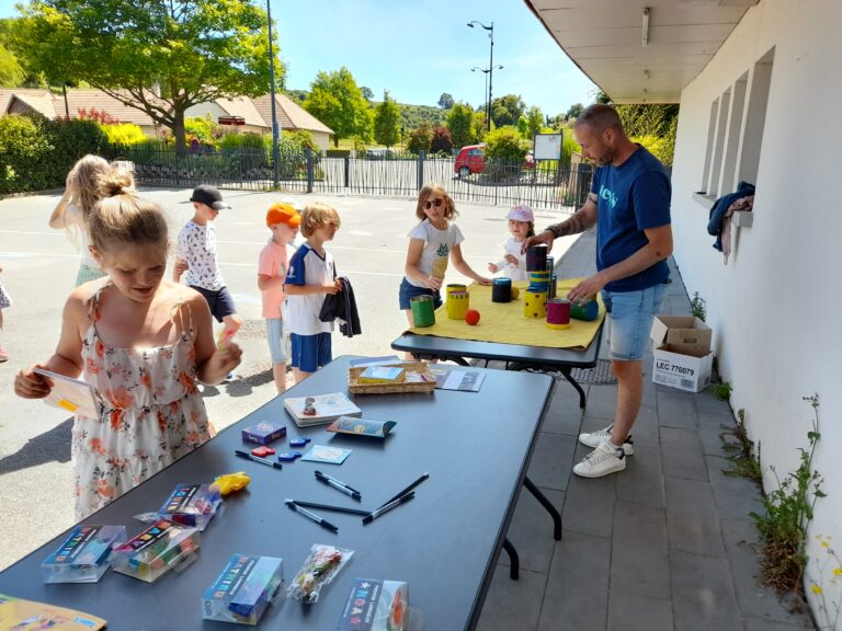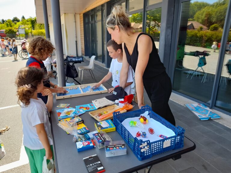 Les tables prêtées par la Mairie, installées sous le préau et dans la cour, ont vite été utilisées pour poser les différents jeux apportés par les parents, ajoutés à ceux appartenant à l’école (pas de prêt de jeux cette année par le Drakkar), ce qui a permis de sauver cette animation.