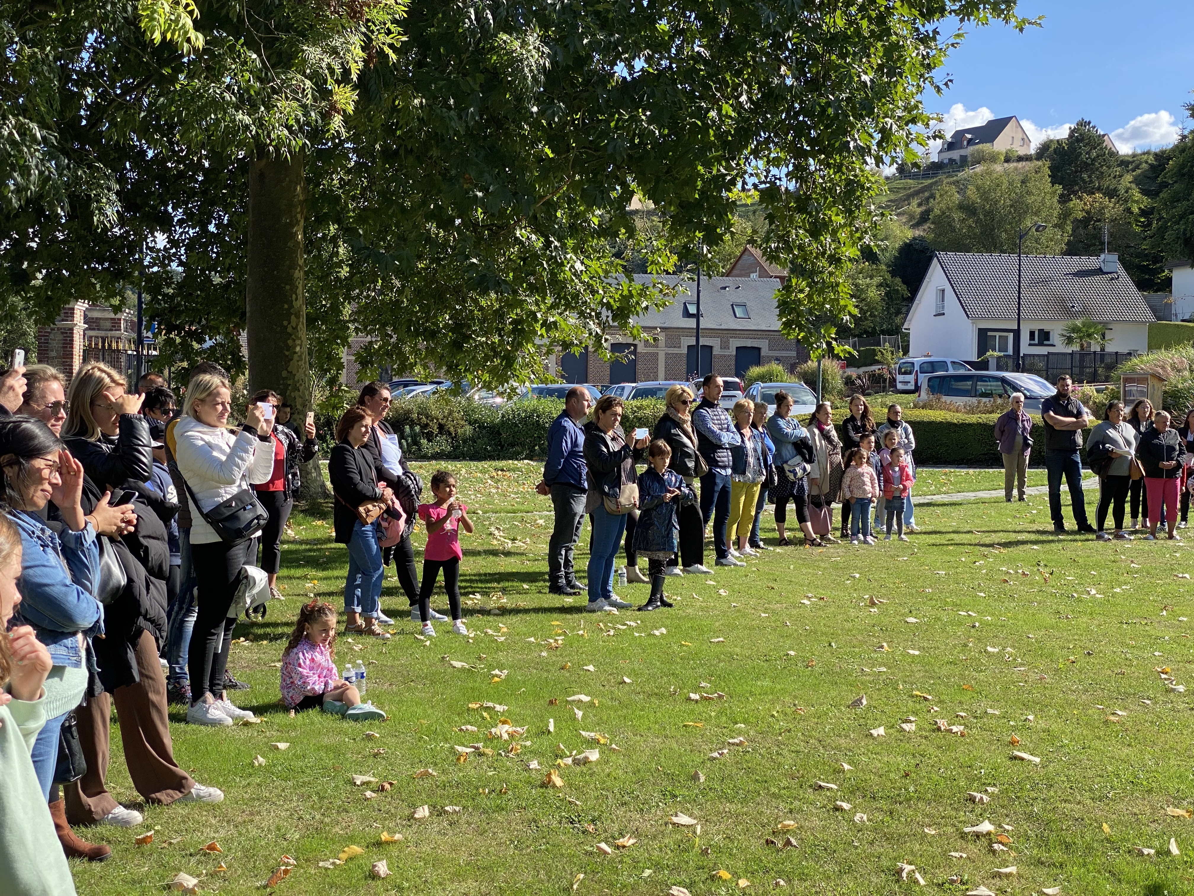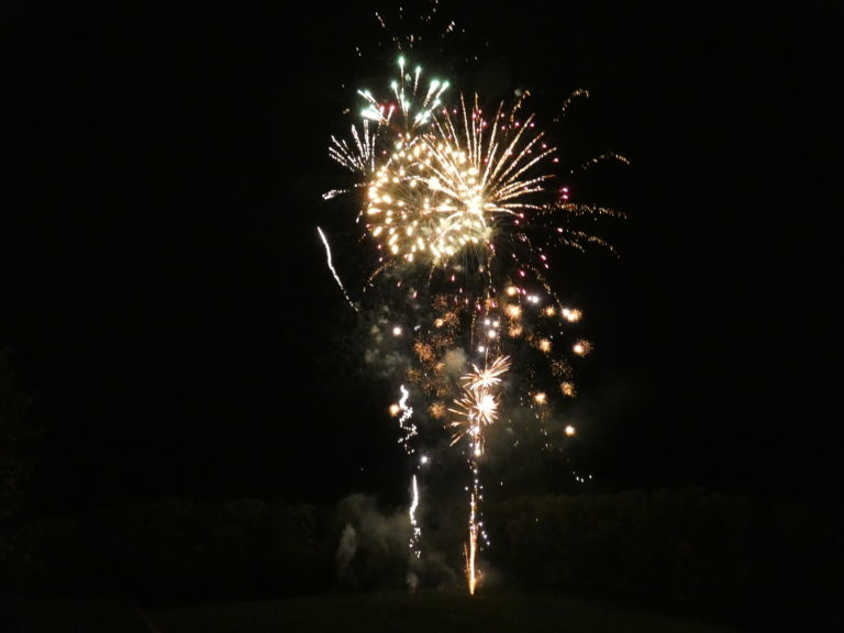 Pour la seconde partie de journée, les Rouxmesnilais et Rouxmesnilaises avaient rendez-vous à 20h30 avec DJ JOSE sur parking de la maison du Vallon, pour une animation musicale avant le coup d’envoi du feu d’artifice… Durant cette attente les élus ont distribué en souvenir de cette alliance historique un tote bag aux personnes présentes. 22h, première fusée et premier crépitement, au total près de 25 minutes de tirs multicolores ont enchanté les spectateurs venus en famille pour partager ce moment de partage…