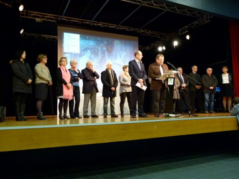 Le Maire Jean-Claude Grout, le Secrétaire général de mairie Philippe Gueret, la 1ère Adjointe Odile Villard et l’équipe municipale ont présenté leurs vœux jeudi 5 janvier, salle Corentin Ansquer. Habitants, chefs d’entreprises, représentants institutionnels, responsables d’associations, commerçants… de nombreux acteurs de la vie locale étaient présents au cours de cette cérémonie.