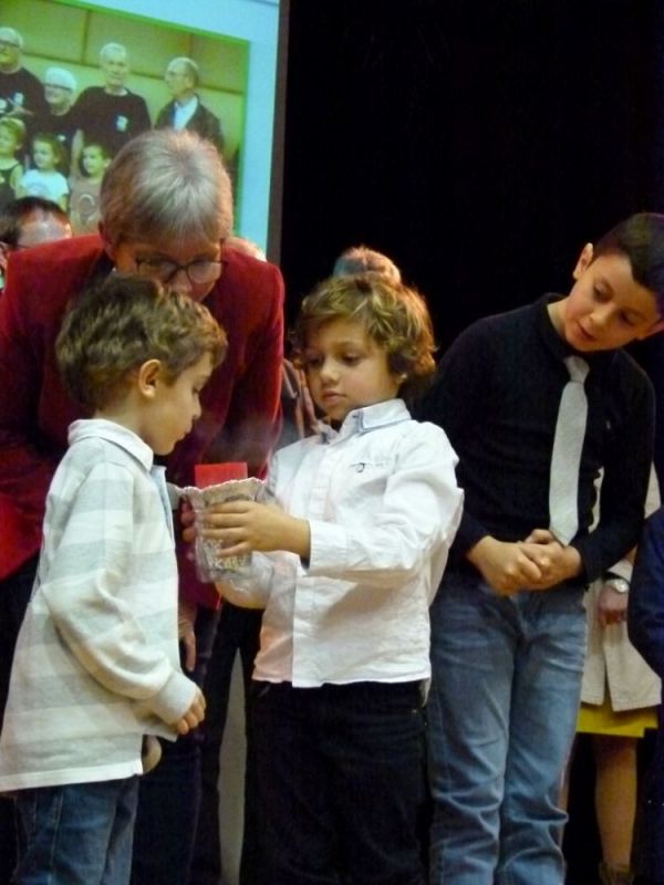 « Un grand merci à Hugo et Lola Tanchon, à Gabin Mordant, à Waël et Elyes Akrémi, à Capucine et Lise Cailly, à Léonie Cannesant, à Rose et Léo Duval…représentant les générations futures. Un grand merci à leurs parents représentant la génération actuelle et bien sûr un grand merci à Claude SACEPE qui a accepté de représenter la génération des papis…. »