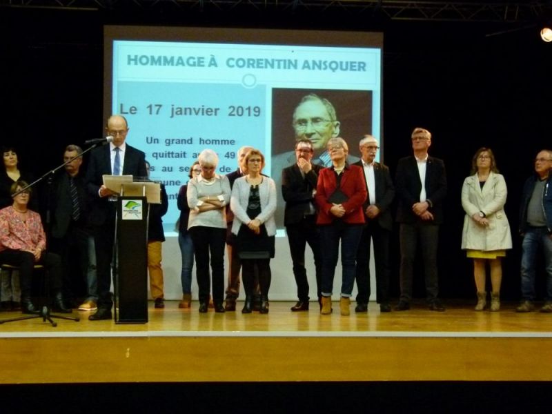 La cérémonie des vœux s’est déroulée jeudi 9 janvier à 19h salle Corentin Ansquer. Cette salle d’animation, chargée du souvenir de Corentin Ansquer qui nous a quittés il y a bientôt un an (17 janvier 2019). Chacun sait à quel point il a travaillé pour l’essor de Rouxmesnil-Bouteilles et le travail qu’il a accompli pour la naissance de la Communauté d’Agglomération de Dieppe Maritime.