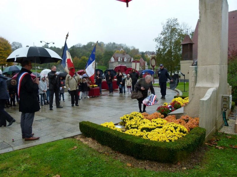 Le temps exécrable n’a pas découragé les participants à la cérémonie, venus nombreux. Parents, enfants, représentants d’associations, enseignant et élus ont honoré de leur présence cette 99ème cérémonie du 11 novembre. Le déroulement s’en est trouvé quelque peu modifié, mais la ferveur est restée intacte. Toutes les générations étaient rassemblées pour cette commémoration, entendre les enfants de la classe de Mme LETESSIER réciter le texte « Nuit et brouillard de Jean FERRAT » fut poignant. C’est à travers eux que la mémoire se perpétue. Il y a 99 ans, des enfants ont connu l’horreur de la guerre et des hommes; que les générations à venir se nourrissent de ces témoignages pour que plus jamais cela n’ait lieu !!!