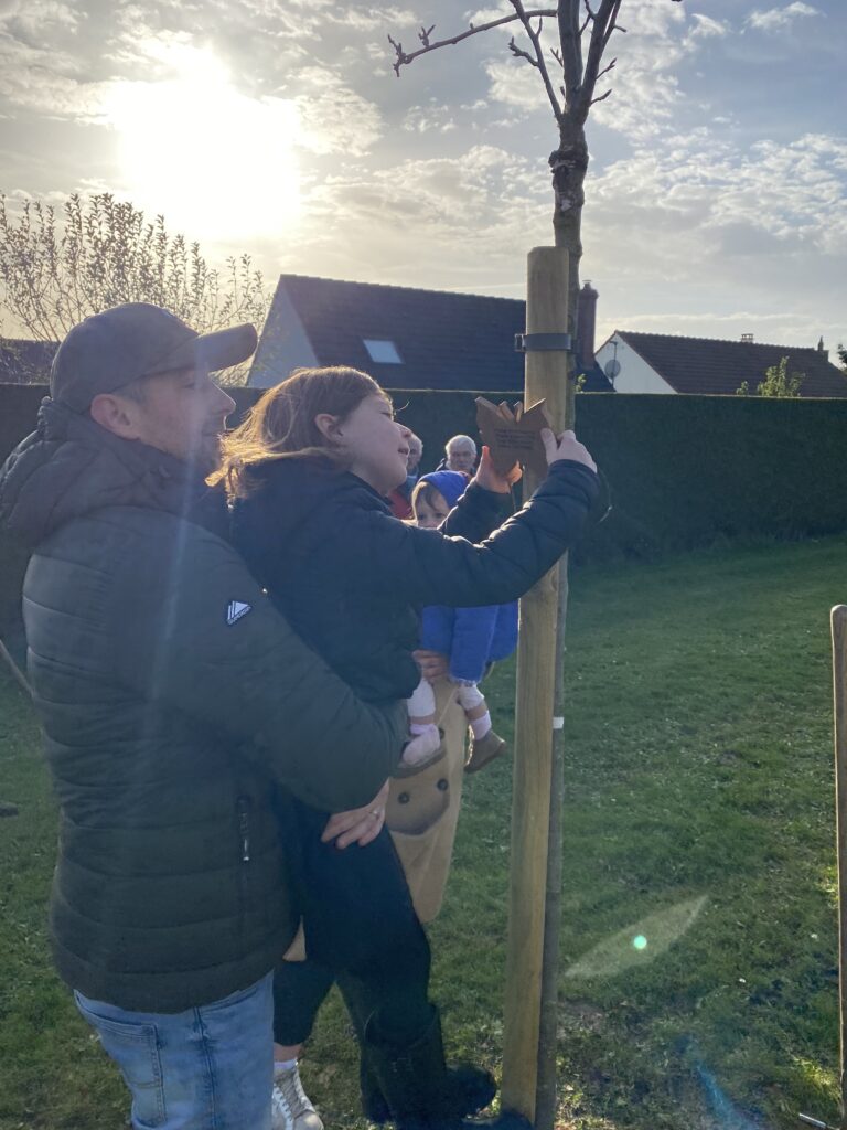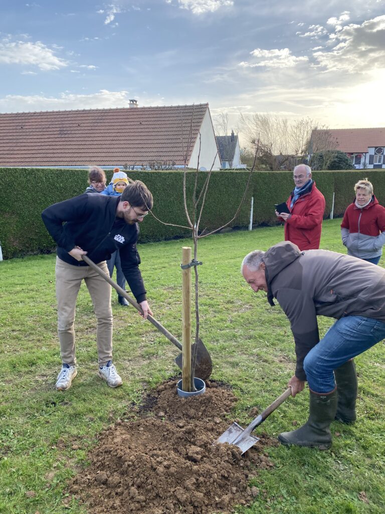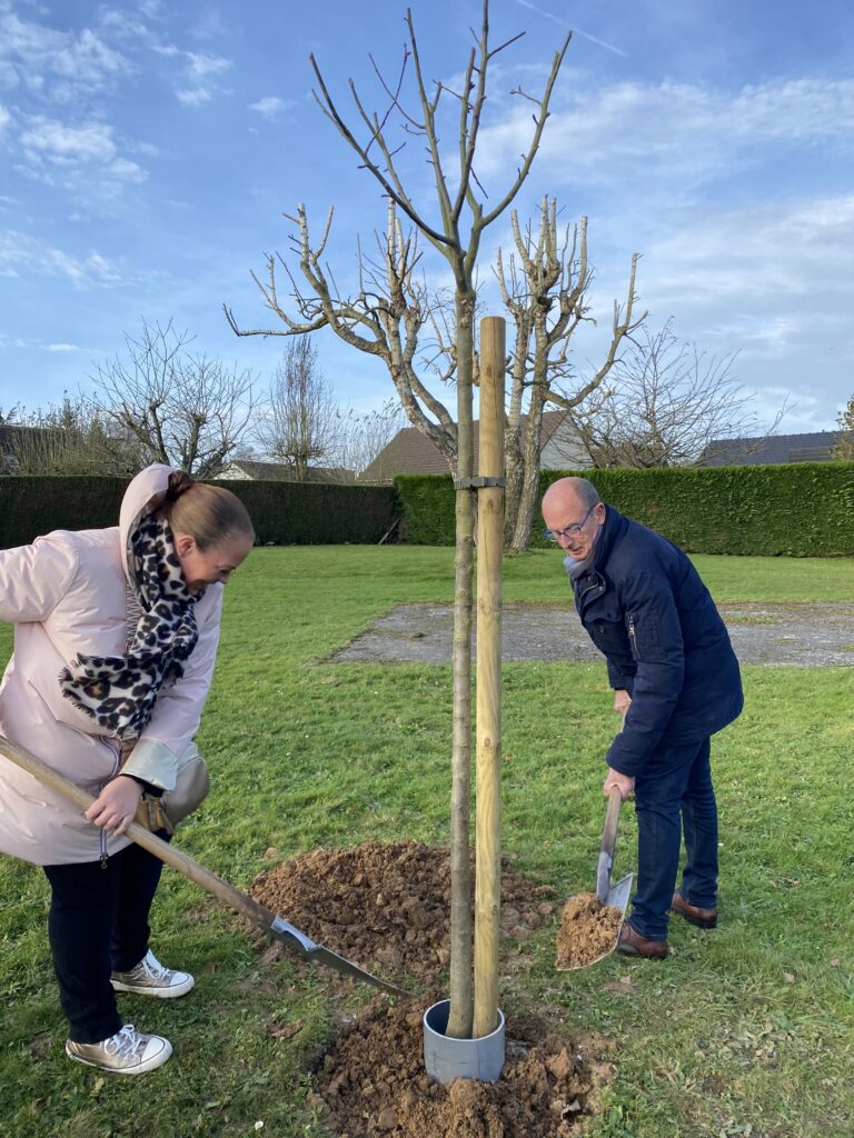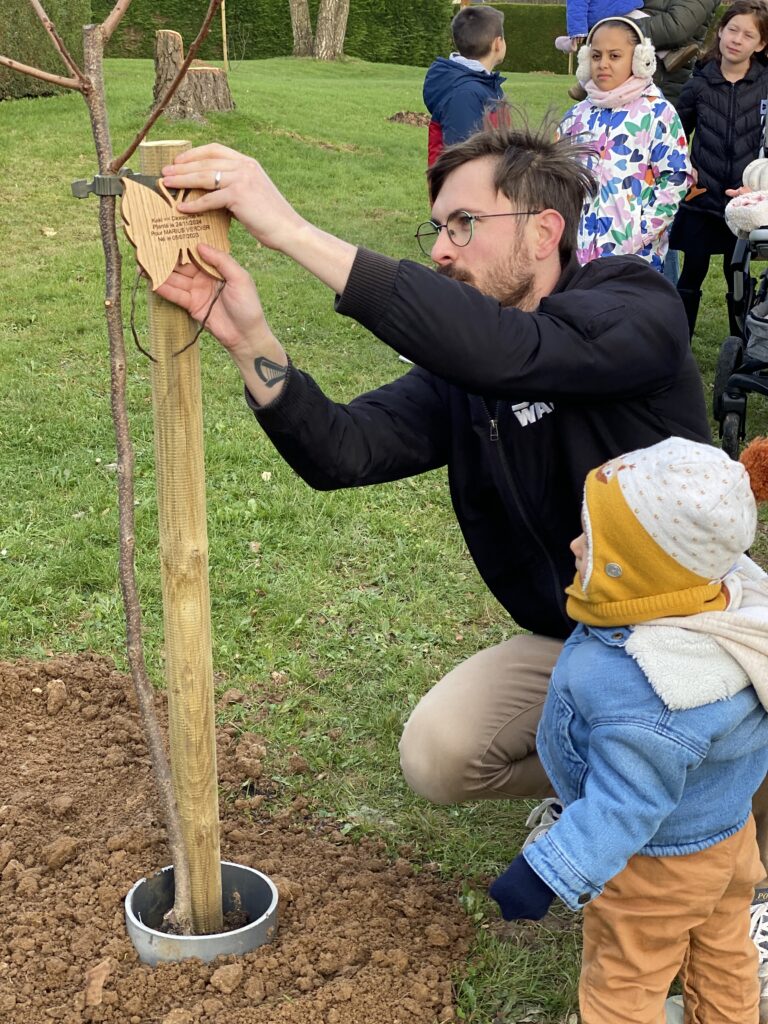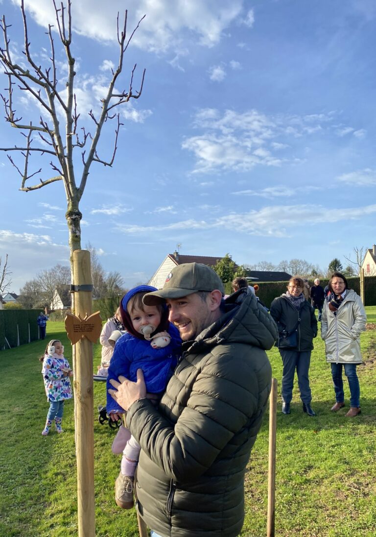 Dimanche 24 novembre, parents, élus, employés communaux et riverains se sont retrouvés Allée des Bergeronnettes à Rouxmesnil le haut, pour la plantation symbolique d’arbres fruitiers. Cet espace porte désormais le nom de « Verger des Jeunes Pousses ». Chacun, au fil de ses promenades pourra glaner et déguster les fruits (poires, pommes, kakis, noisettes, cerises, figues et prunes) arrivés à maturité. Ces fruits pourront également être servis aux enfants de la cantine. Un certificat de parrainage et une carte-cadeau ont été remis aux parents. Pour officialiser chaque plantation, les parents ont également été invités à apposer la plaque d’identification personnalisée de leur enfant sur l’arbre qui lui a été attribué. Ces plaques ont été réalisées dans l’atelier d’un Rouxmesnilais, Allée des Tourterelles. Alain Crèvecœur est un tourneur sur bois passionné et passionnant, qui se met au défi de réaliser toute sorte d’objets (actourneur76@gmail.com).