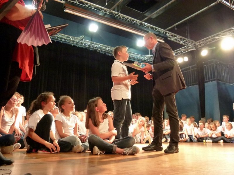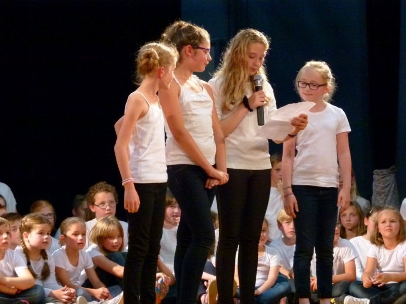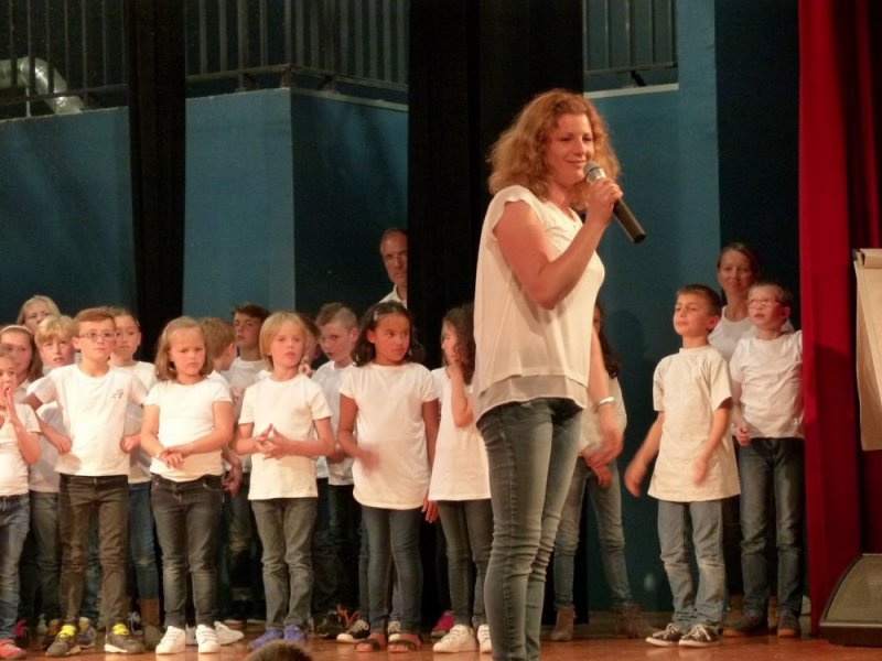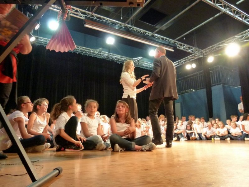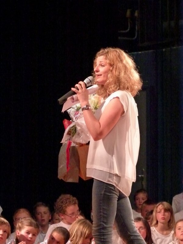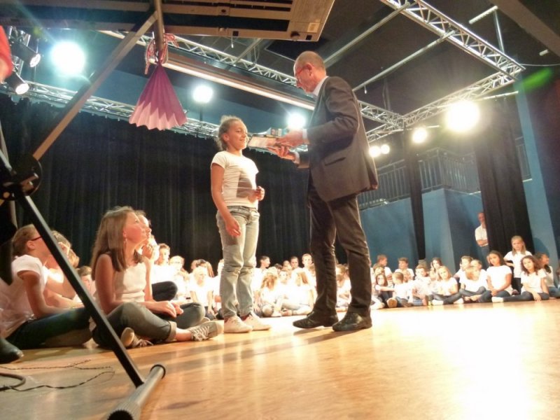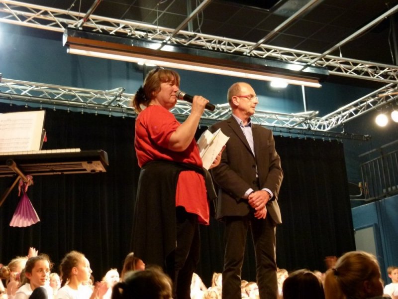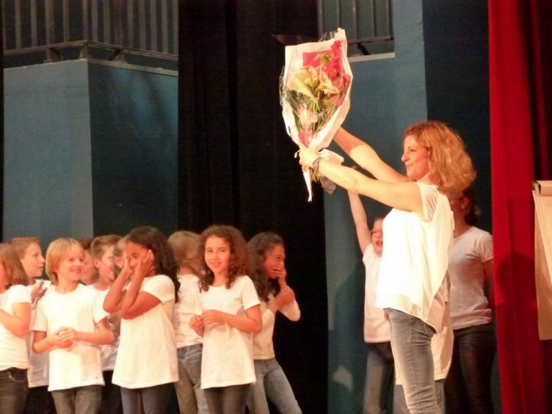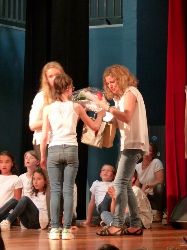 À la fin de la représentation, les élèves de CM2 de Mme Letessier, ont tenu à exprimer leur gratitude envers Lise. Même s’ils partent pour le collège, ils n’oublieront pas la patience et le dévouement de leur professeure de chant. Ces quatre années passées ensemble, furent une expérience épanouissante pour ces petits élèves devenus grands.