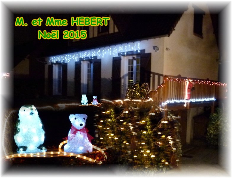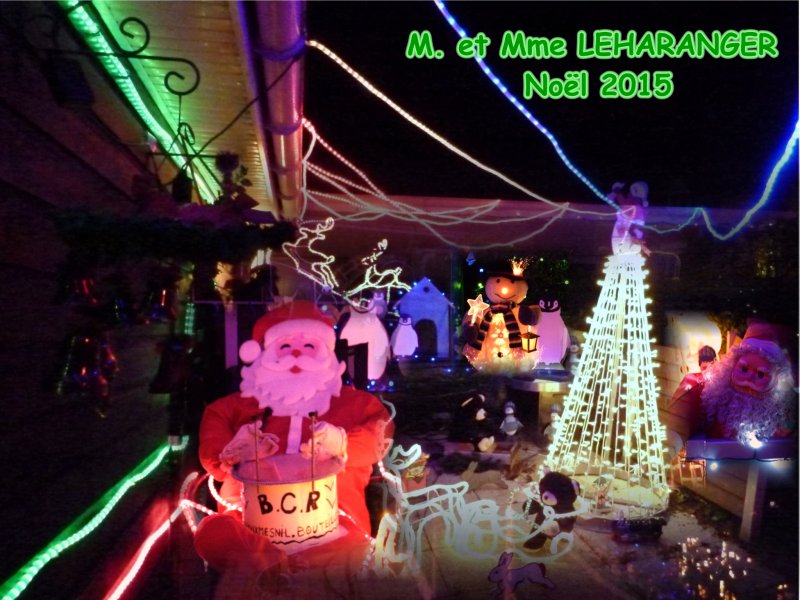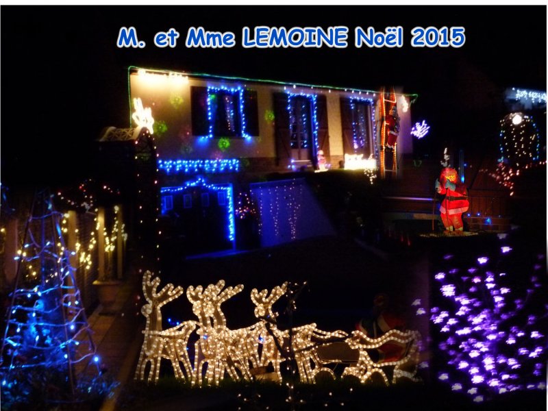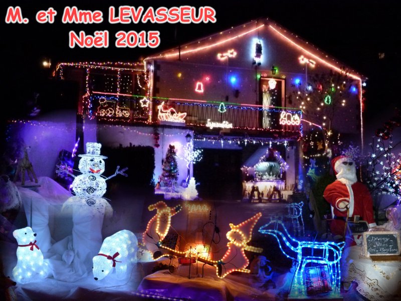 M. et Mme LEVASSEUR ont eux aussi attrapé le virus en 2002, depuis ils n’ont cessé de collectionner des dizaines et des dizaines de sujets lumineux. Ils consacrent chaque année 200 € minimum à la réparation et à l’achat de nouvelles pièces, nécessitant un espace important de stockage et de l’organisation. Plus de 500 mètres de guirlandes sont déployés à l’extérieur, comme à l’intérieur !! Trois semaines d’installation sont consacrées à la mise en place des décors et une cinquantaine de prises électriques sont disséminées dans toute la maison. Soucieux de l’environnement, les LEDS ont remplacé progressivement les vieilles ampoules électriques trop énergivores, divisant de moitié leur consommation énergétique. En prime de bons petits chocolats sont à la disposition des nombreux promeneurs admiratifs.