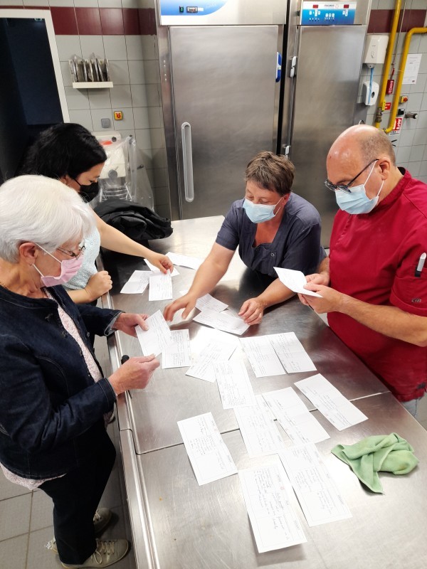 Après le dépôt des bulletins dans une urne mise à disposition dans le réfectoire, le jury (Didier, Virginie, Anne-Marie Artur, Marie-Laure Delahaye et Veronica Troglia) a sélectionné 4 menus qui sont cuisinés cette semaine du 21 au 25 Juin.