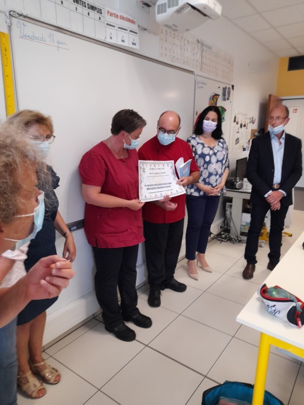 Pour Didier et Virginie qui leur préparent chaque semaine des menus d’exception, les enfants leur ont remis le « Diplôme de la Toque d’Or » sur lequel ils ont tous apposé leur signature.