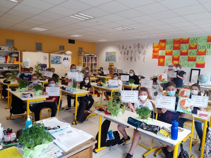 Pour les féliciter, ils ont reçu un livre de « recettes de cuisine » pour enfants. Puis, tous les élèves sans exception on reçu un diplôme, soit de lauréat soit de participant, ainsi qu’un pot de plante aromatique, acheté « Aux Jardins d’Avremesnil ».