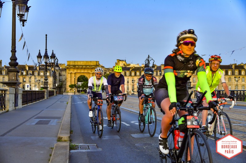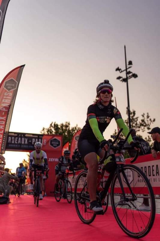 Bordeaux, rendez-vous sur la zone de départ à 6 h 45, les concurrents partent 6 à 6 toutes les minutes. Le soleil se découvre de plus en plus, la première étape passe assez vite, elle roule avec un groupe de trois cyclistes, Stéphane, Salvator et Florent qui viennent de la région lyonnaise dans l’Ain. Kilomètre 155: 11 h, fin de la première étape, MONTBRON. Le groupe de cyclistes s’accorde une pause le temps de faire le ravitaillement en eau et en nourriture. Le départ de la seconde étape est très vallonné, avec des dénivelés positifs allant jusqu’à 3 500 m. Sous une chaleur accablante, les paysages défilent, malgré des moments difficiles, Pauline, c’est pourquoi elle participe à cette course, pour le plaisir de rouler et de découvrir de beaux endroits. La nuit approche, il reste 50 km avant d’atteindre CHÂTEAUROUX avant minuit, avec 1 heure d’avance sur le planning ! Après une douche, un repas, un peu de repos (sans toutefois trouver le sommeil) et la voilà à nouveau en selle. Kilomètre 345, départ 3 h 45, pour la troisième étape d’une matinée qui s’annonce venteuse. Les 120 km suivant se dérouleront sans difficulté sur le plan technique ; côté physique, ses camarades avoueront avoir piqué du nez sur le vélo, là où elle les imaginait très en forme ! 9 h 30 avec 465 kilomètres au compteur, avant-dernière étape à MER, avant l’assaut final, PARIS. Elle sait à ce moment-là, qu’elle arrivera avant 23 h et que le défi est relevé ! Durant son parcours, elle a reçu de nombreux encouragements de ses proches et notamment une vidéo de ses enfants tout sourire, en train de dire : « Allez ma maman, allez ma maman, c’était si touchant et motivant ! »