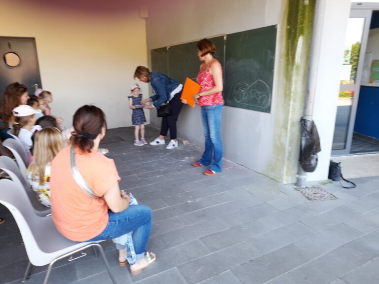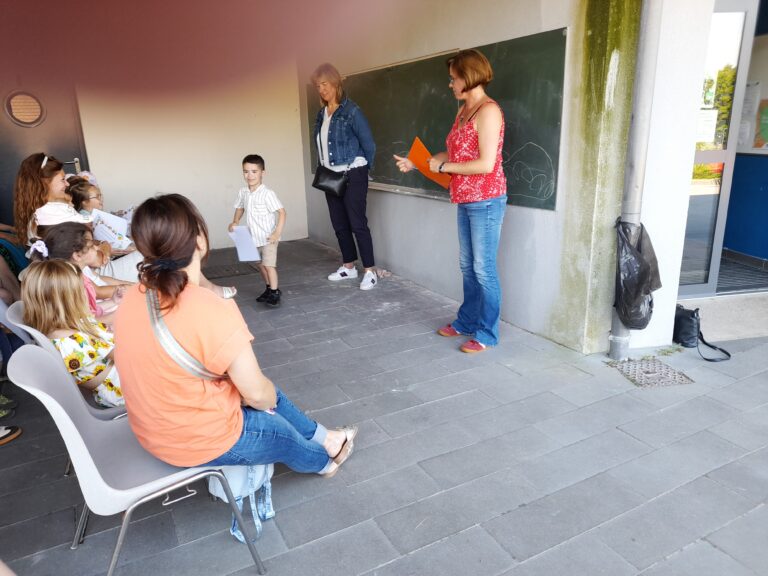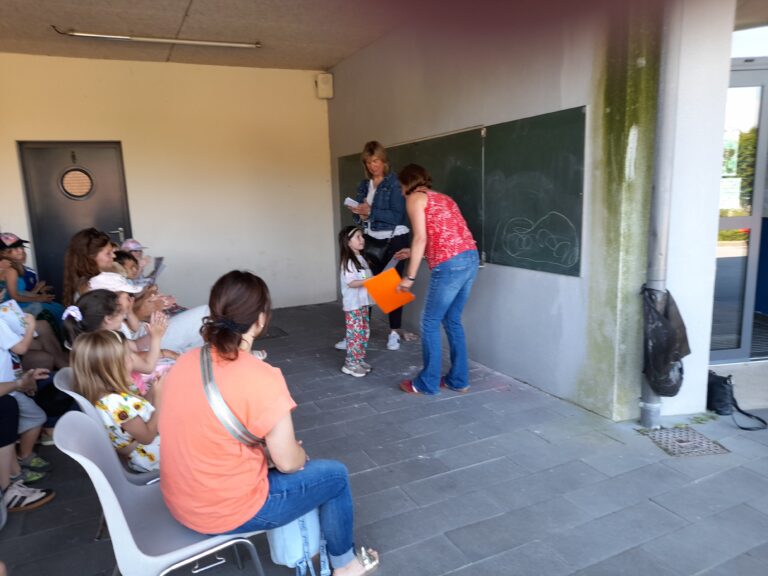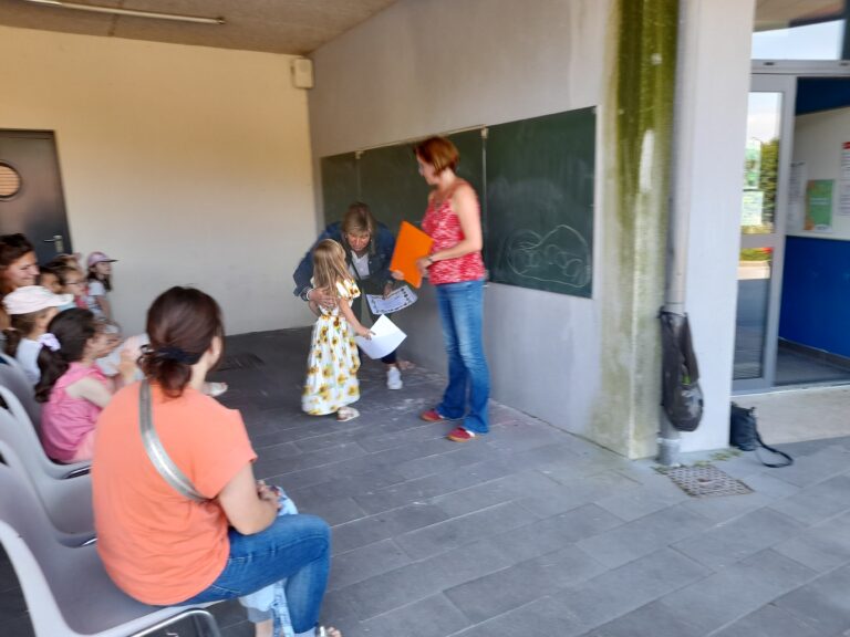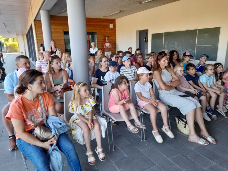Le mardi 25 juin 2024, tout ce petit monde s’est retrouvé sous le préau de « La Salicorne », en présence d’Anne-Marie Artur adjointe en charge de la commission scolaire. Elle a demandé aux personnes présentes de bien vouloir excuser Mr Grout notre maire, retenu par un conseil communautaire.
