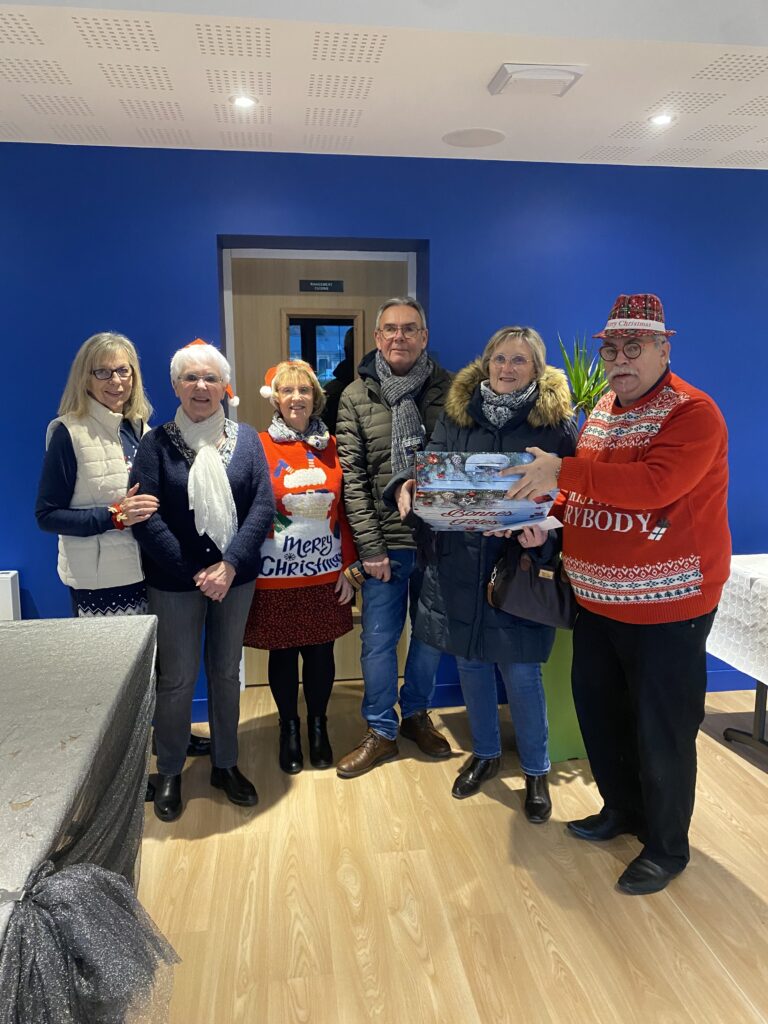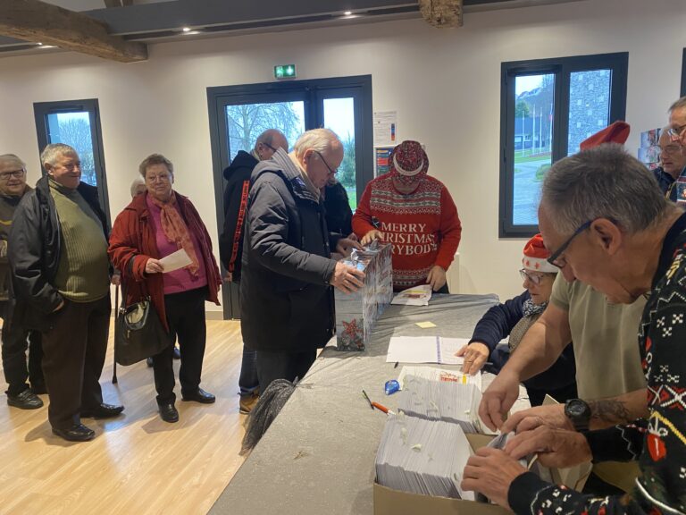 Ambiance festive et réconfortante, vendredi 13 décembre salle des Saulniers, lors de la distribution des colis de Noël aux Aînés de plus de 65 ans de la commune. Cela représente 461 colis et autant de bons de 5€ à valoir chez nos commerçants de proximité (Boulangerie, salon de coiffure et d’esthétique), budget alloué : 10 830 €.
