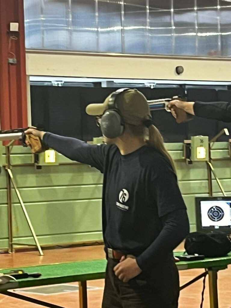 Qualifiée au pistolet précision, au Standard et à la vitesse.