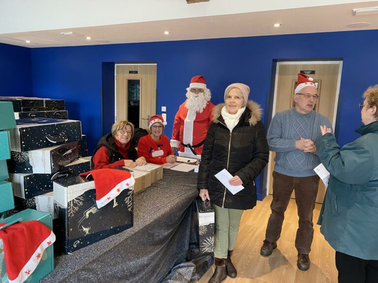 Les aînés ont été reçus chaleureusement par les élus et le Père Noël, lors de la distribution des colis de Noël (Coût total : 9 775€) dans la nouvelle salle des Saulniers, les 13 et 14 décembre 2022. À cet assortiment gourmand et de qualité, est associé un bon d’achat de 5 € (valable jusqu’au samedi 28 janvier 2023) à valoir chez nos commerçants du centre-bourg (boulangerie, esthéticienne et coiffeuse).