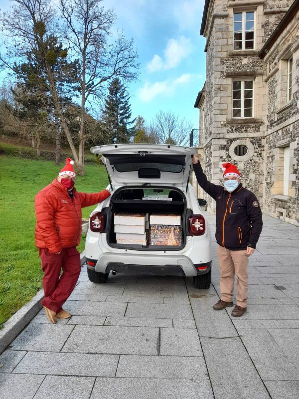 La commission des Aînés a tenu à maintenir le traditionnel colis de Noël, en optant pour un colis offrant des produits goûteux du terroir français des établissements VALETTE, accompagné d’un bon d’achat de 5€ à valoir chez nos artisans boulangers, Mr et Mme MARTIN. Face aux difficultés liées au confinement, les élus se sont mobilisés pour une distribution en porte-à-porte durant toute une semaine. En tout, ce sont 285 colis (solo et duo) qu’il aura fallu livrer aux 400 aînés de plus de 65 ans que compte notre commune. Malgré les gestes barrières et le port du masque, c’est avec un sourire chaleureux que les « lutins » municipaux ont accompli leur mission. Ils ont reçu en échange un excellent accueil plein de sympathie.