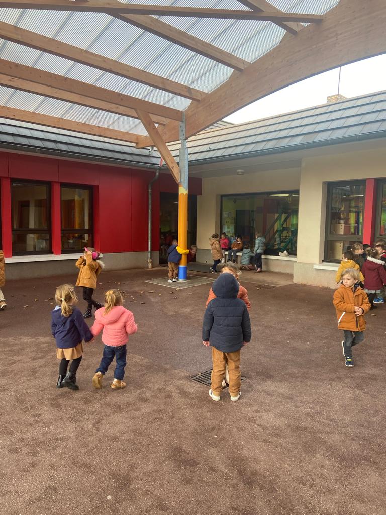 Lors de la rentrée scolaire de septembre 2023, les enfants de l’école maternelle « Les Farfadets », ont pu découvrir le magnifique préau construit pendant les vacances d’été. Ils apprécient cet abri qui les protège de la pluie et des rayons du soleil qui tapent assez fort certains jours.