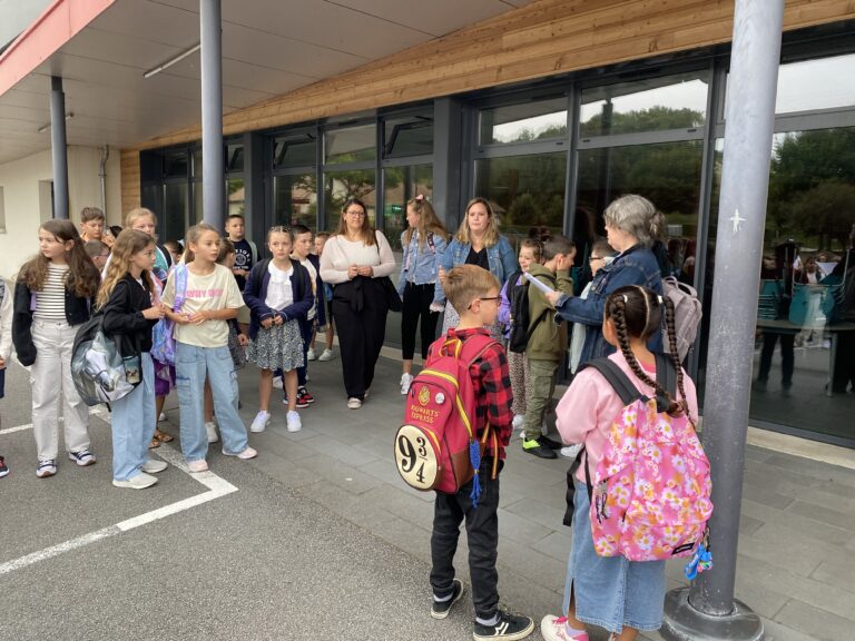 C’est sous un ciel chargé de nuages que la rentrée s’est déroulée le lundi 2 septembre 2024, en présence de représentants de la municipalité, Anne-Marie Artur adjointe commission scolaire et Marie-Laure Delahaye adjointe communication. Mr le Maire ayant un empêchement s’est fait excuser.
