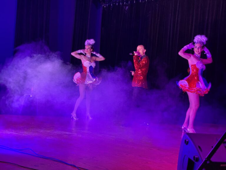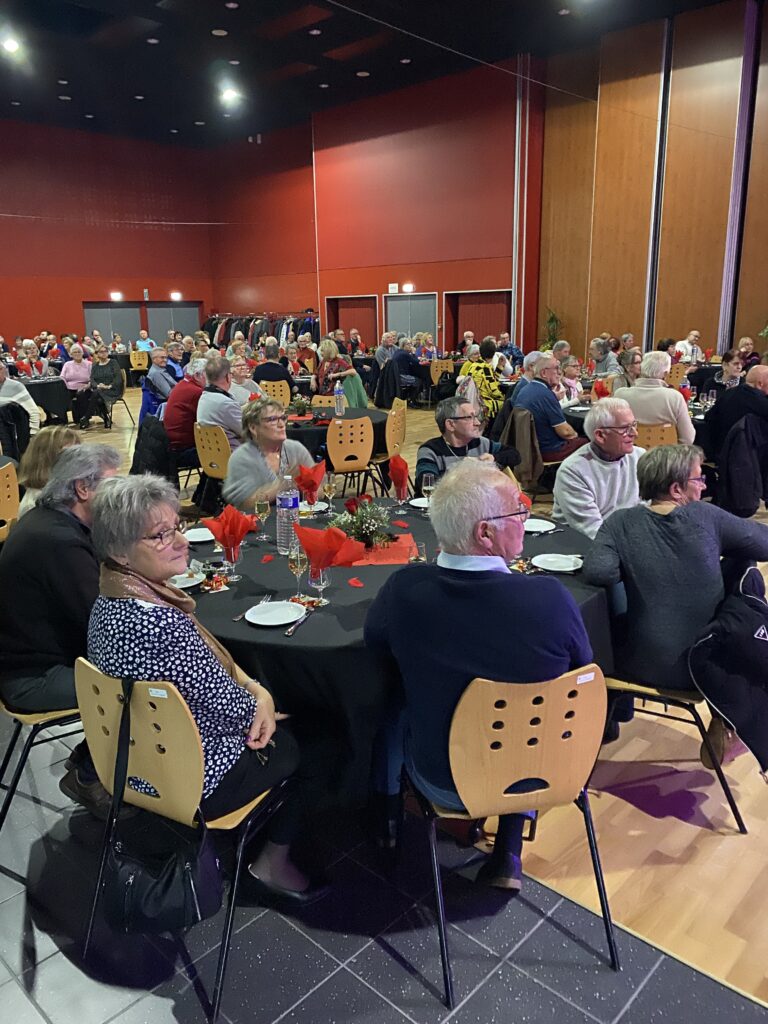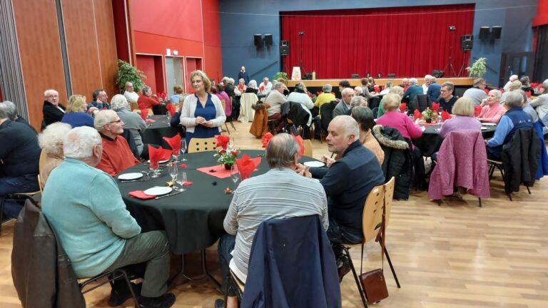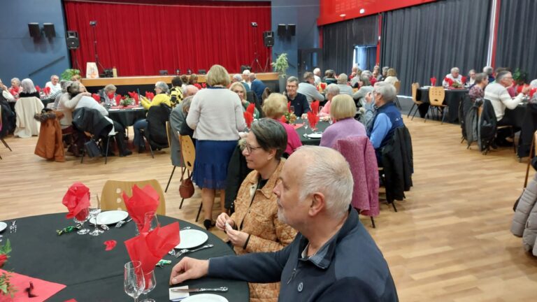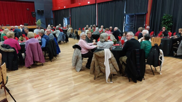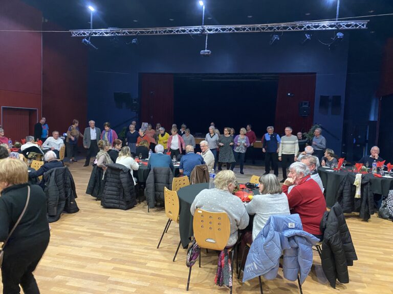 Les quelques jours précédents la galette des Aînés ont été relativement compliquées, compte-tenu du verglas et de la neige. Cet épisode de froid aurait pu nous faire renoncer, par chance le redoux a finalement fait disparaître instantanément ce magnifique paysage hivernal. Ainsi, l’animation de ce début d’année a pu avoir lieu dans de bonnes conditions. La salle Corentin Ansquer a revêtu pour l’occasion une décoration sur le thème de l’animation choisie « Cabaret/Music-Hall». La compagnie « Les Petites Folies » a assuré deux parties de spectacle, chantées et soigneusement chorégraphiées, avec pour final un French Cancan acrobatique ! Entre deux bouchées gourmandes, José PREVET a compilé des musiques des années 70 à 80 à la demande des convives.