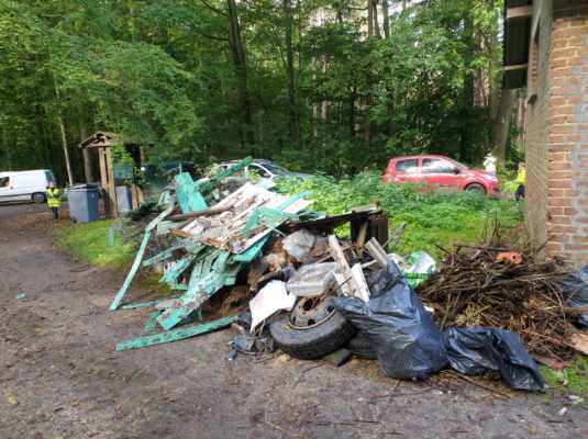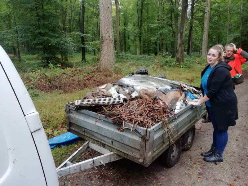 Les bénévoles, armés de gants ont arpenté la forêt, près de 700 kg ont été collectés. Des déchets en tous genres, verre, tontes, roue, bidon d’huile de vidange, téléphone, télévision, pare-brise …..