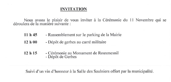 Invitation à la cérémonie du 11 novembre