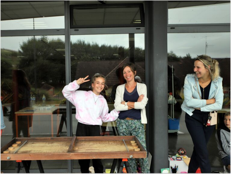 Les tables prêtées par la Mairie, les jeux en bois récupérés auprès du Drakkar, apportés par Sylvain et Yannick, ont été installés dans la cour et sous le préau de « La Salicorne ». Ils ont ainsi permis aux enfants de passer une après-midi de détente et festive.