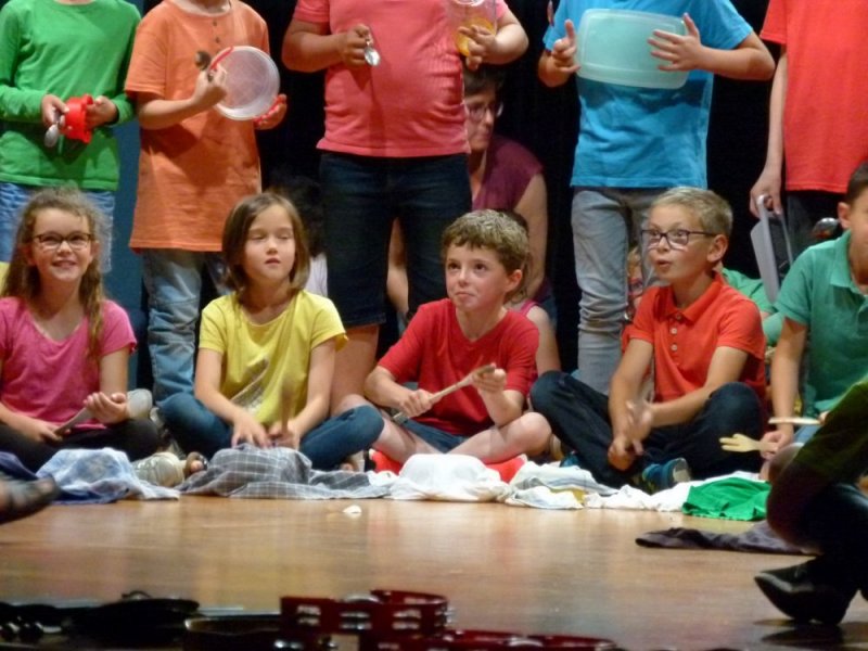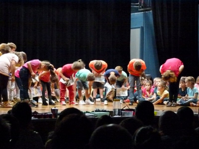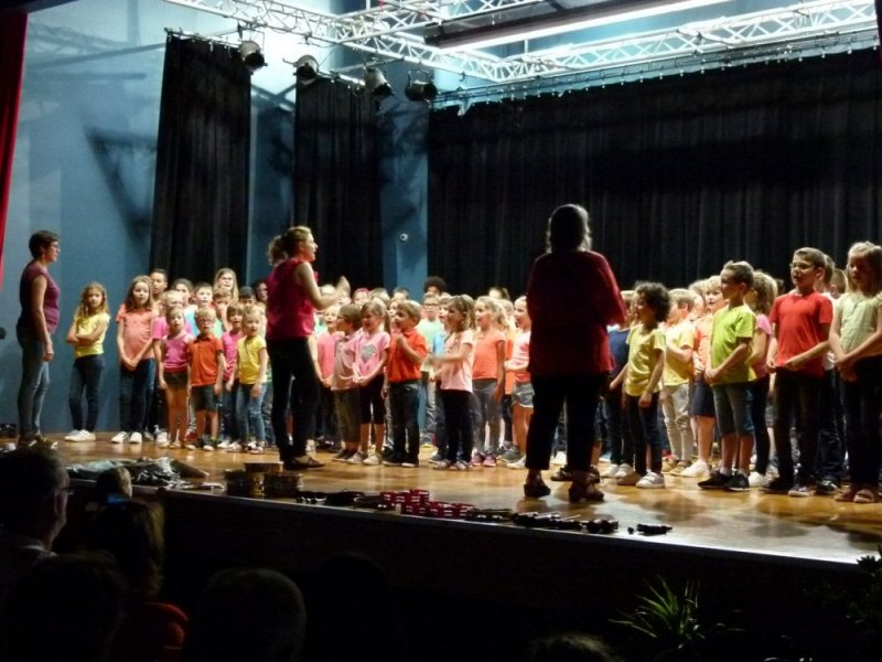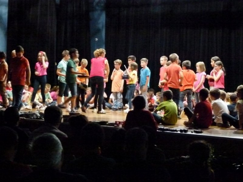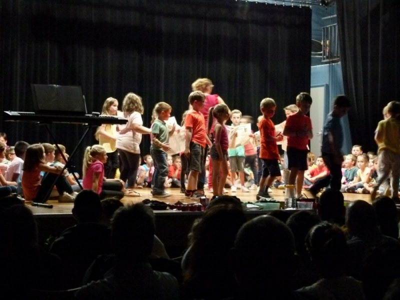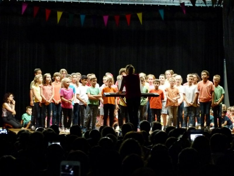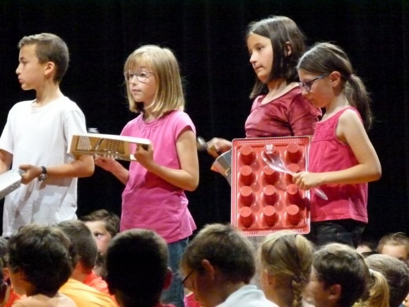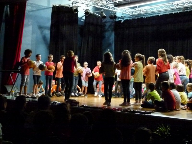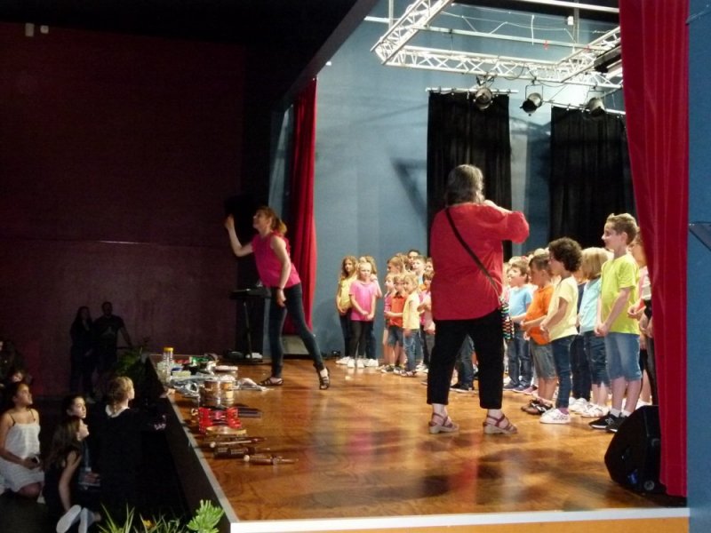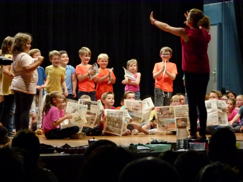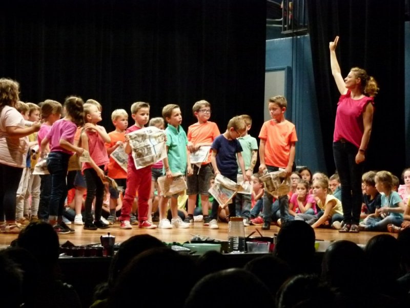Il faisait chaud sur la scène de la salle Corentin Ansquer, mais les enfants ont assuré le show, les yeux rivés sur Anne-Lyse leur professeure de chant. Il y avait d’étonnants instruments de musique, comme du matériel de cuisine, des journaux, et même des ballons de basket, résultat surprenant et bluffant !!