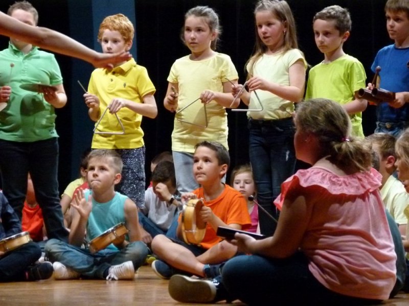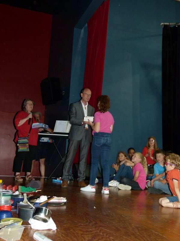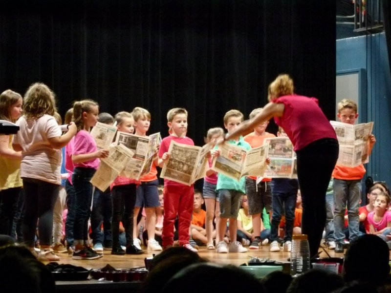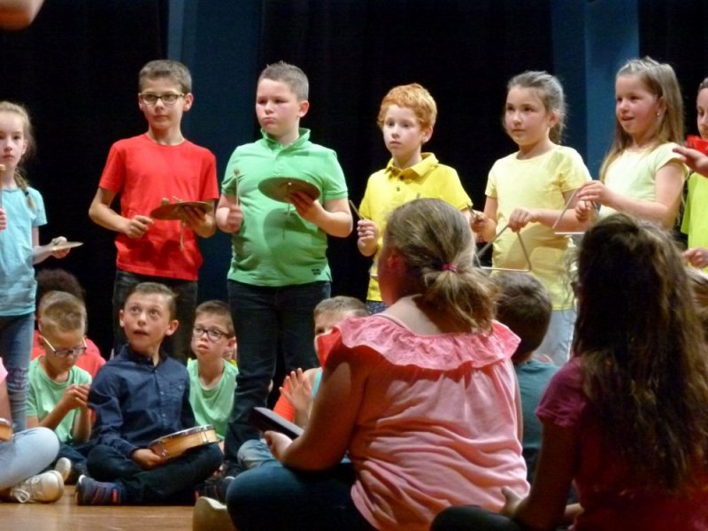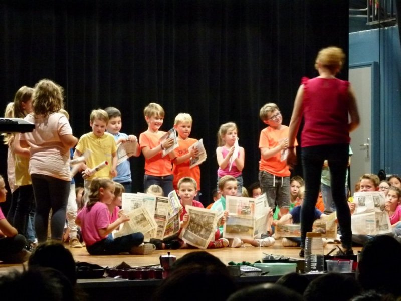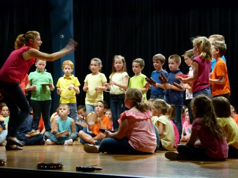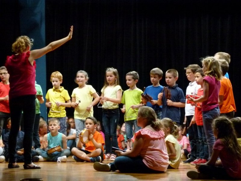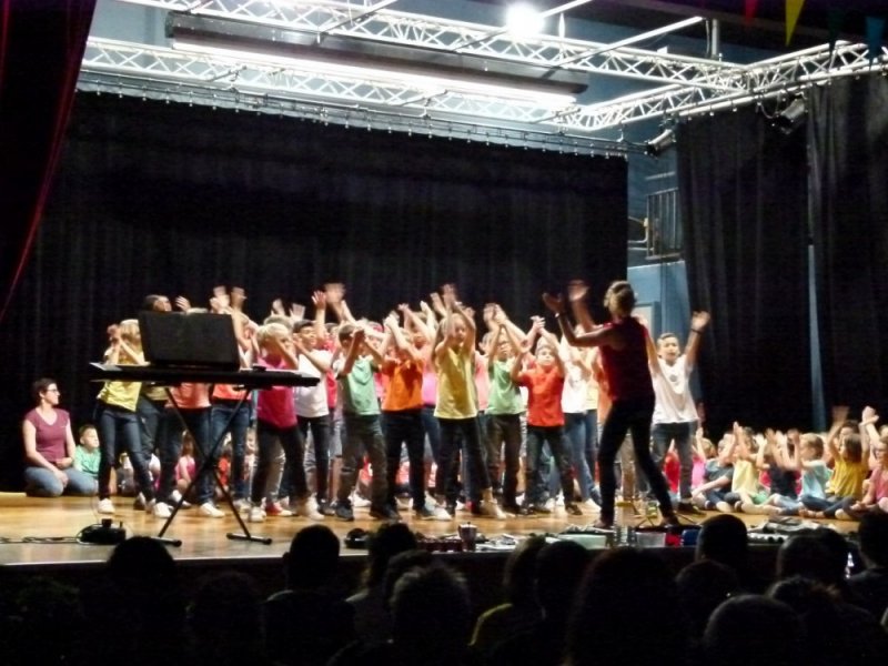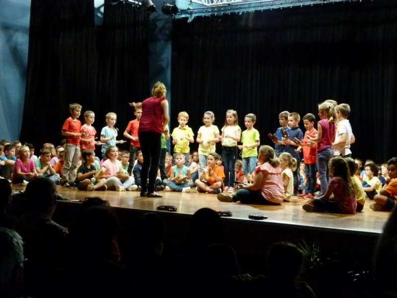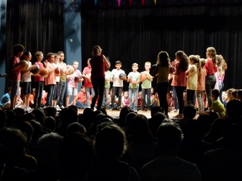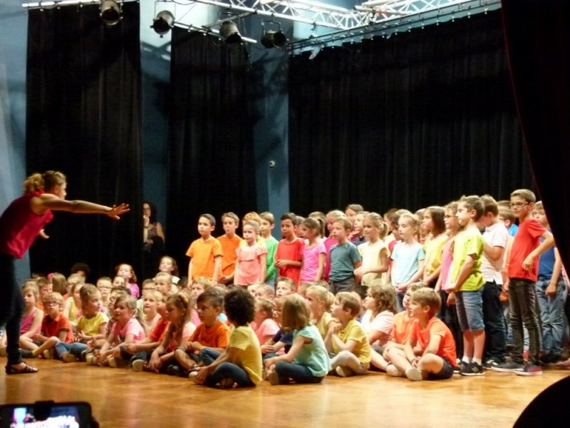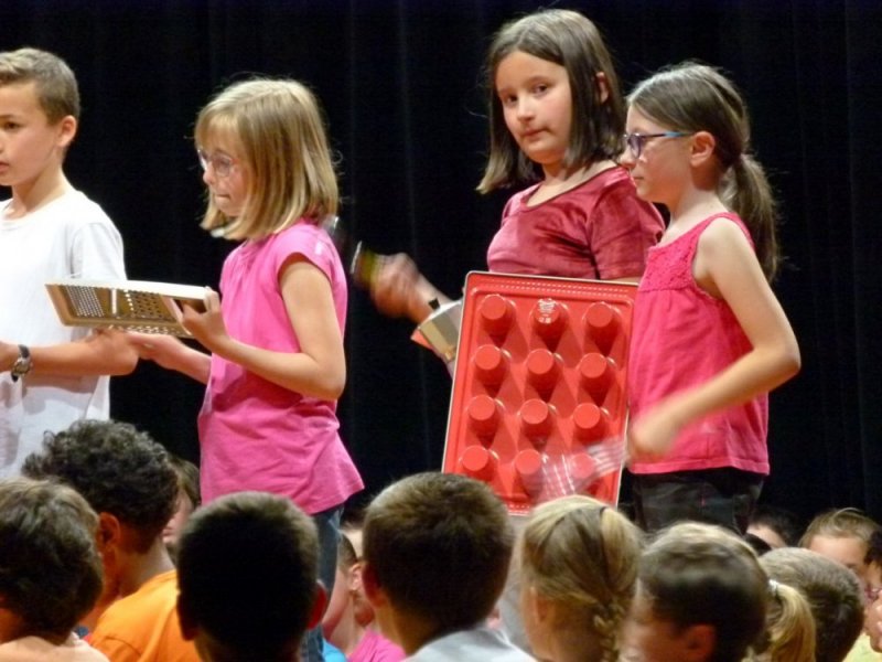 Il faisait chaud sur la scène de la salle Corentin Ansquer, mais les enfants ont assuré le show, les yeux rivés sur Anne-Lyse leur professeure de chant. Il y avait d’étonnants instruments de musique, comme du matériel de cuisine, des journaux, et même des ballons de basket, résultat surprenant et bluffant !!