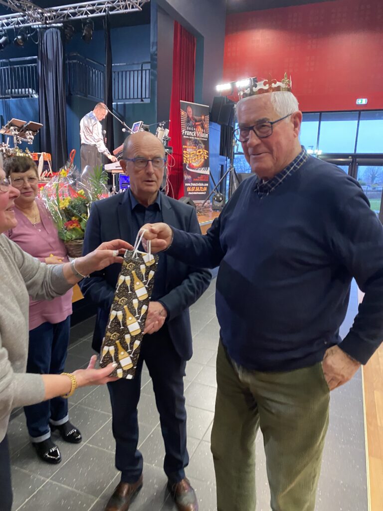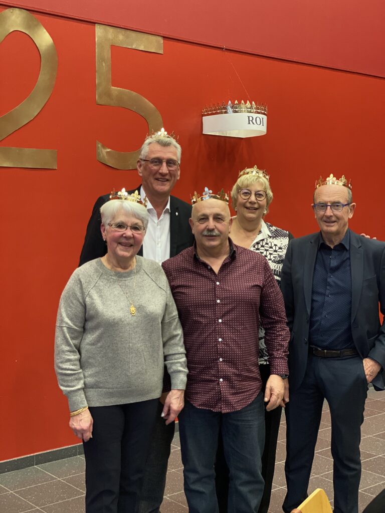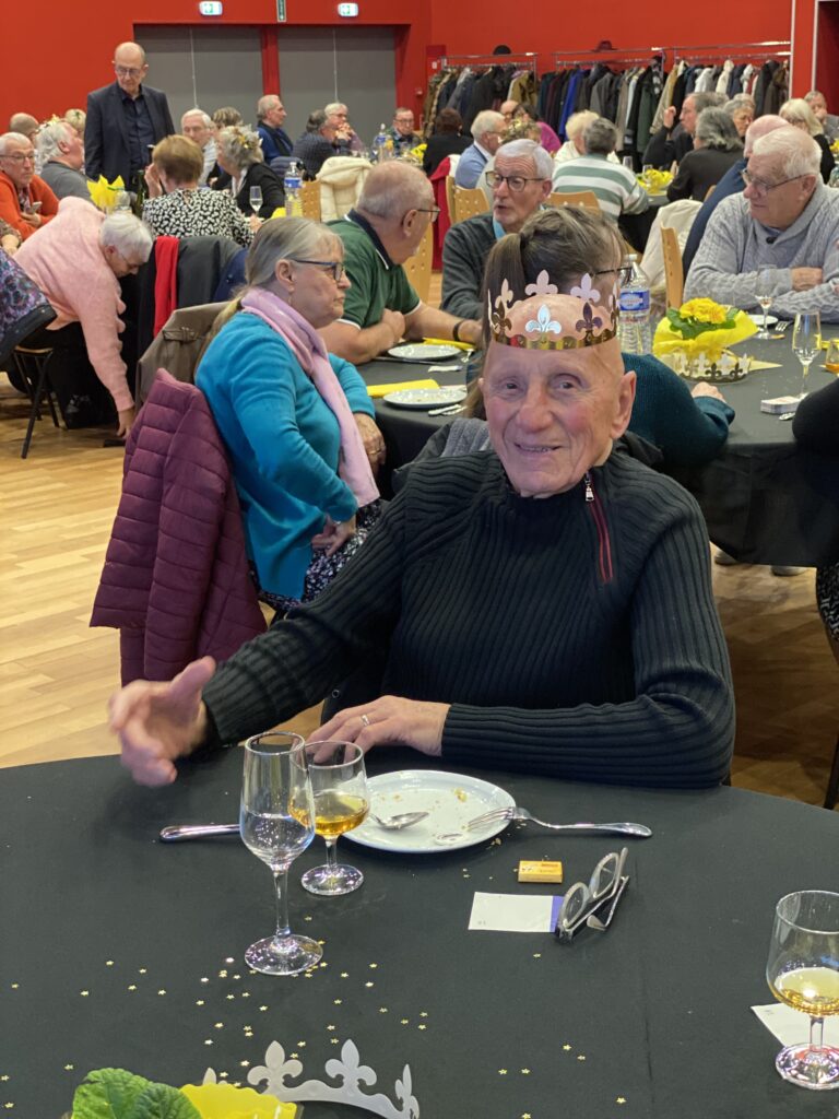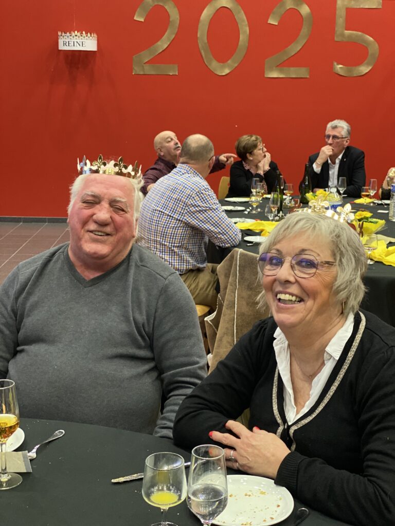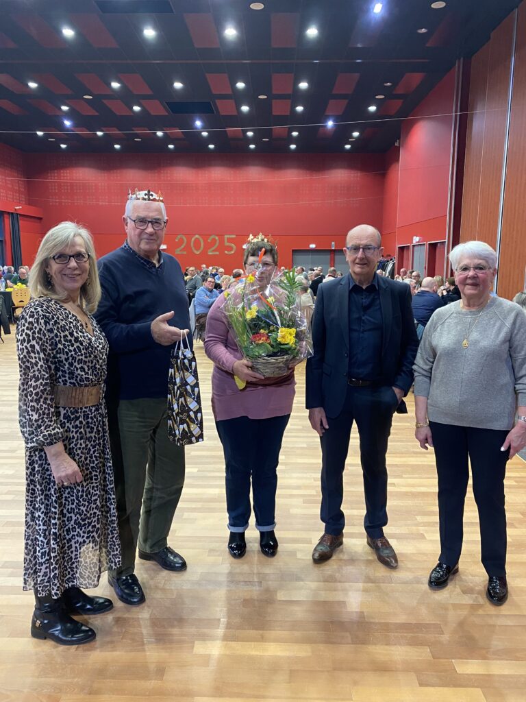 Pour régaler les 163 personnes inscrites, il aura fallu 22 galettes frangipanes et 15 galettes à la pomme de la boulangerie MARTIN. Cela fait autant de rois et de reines en cette après-midi. Pour permettre à tous d’obtenir le couronnement suprême décerné par les élus, le tirage au sort a départagé les candidats. Mme Annie VATINEL et M. Jean-René FOLLIOT sont les heureux couronnés de la galette 2025. Par ailleurs, nous avons eu le plaisir de souhaiter un joyeux anniversaire à M. Lucien EVRARD, qui a été très surpris d’être ainsi mis à l’honneur. L’orchestre de « Franck Vilain » composé de musiciens professionnels a enchanté le public par une prestation de qualité !
