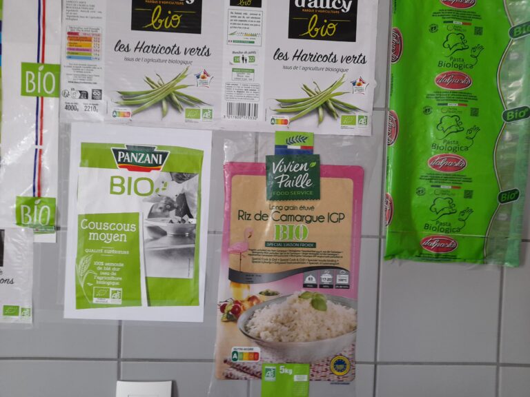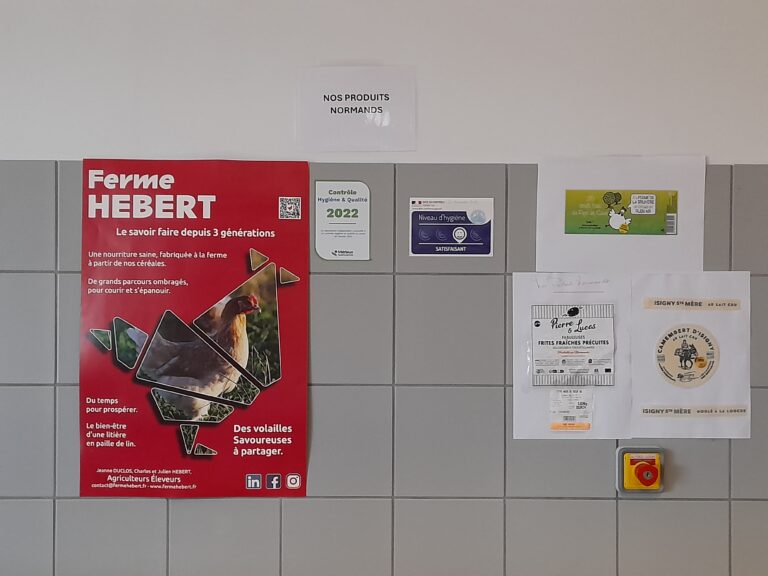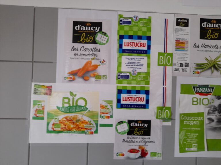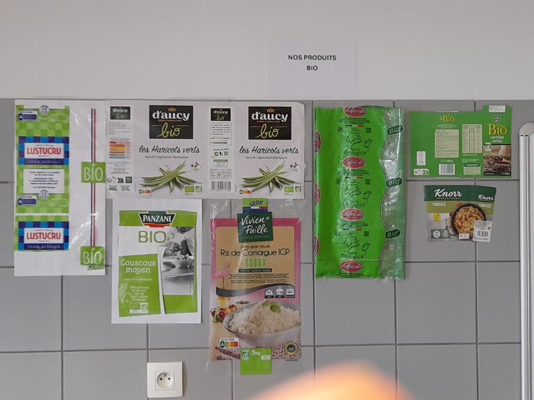Notre restauration scolaire est actuellement au niveau 3 de cette loi. Depuis le 1er janvier 2024, il faut proposer 50% de produits durables ou sous signe d’origine ou de qualité dont au moins 20% de produits bio, ce que nous essayons de respecter. Une mention valorisante doit figurer sur les produits de qualité et durables (produits fermiers – région ultrapériphérique – circuits courts). Comme il nous l’est demandé, l’origine et la liste des produits utilisés pour la préparation des plats, sont affichées à l’entrée de la cantine scolaire.