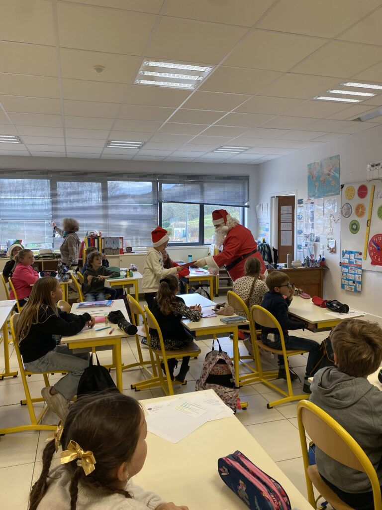 Cette année encore, le Père Noël nous a fait un immense honneur, en décidant de faire une halte surprise à Rouxmesnil-Bouteilles, pour distribuer aux petits élèves de notre Groupe Scolaire, les cadeaux et chocolats qu’il avait choisis spécialement pour eux.