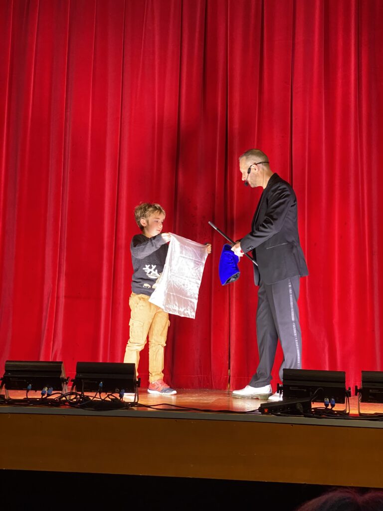 Cette animation organisée par José PREVET, a permis aux petits et grands d’admirer les différents artistes invités pour l’occasion. Passant de la jeune Julie à la « Pole Dance », puis au ventriloque, aux artistes de cirque mêlant le rola bola, la jonglerie antiposdiste et l’intelligence des chiens et des chats et enfin les clowns venus de Suisse. Le tout agrémenté par la sublime voix de Marlène qui nous a enchantés. Et pour finir, des tours de magie avec la participation des enfants.