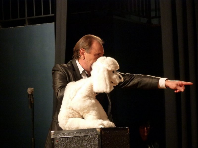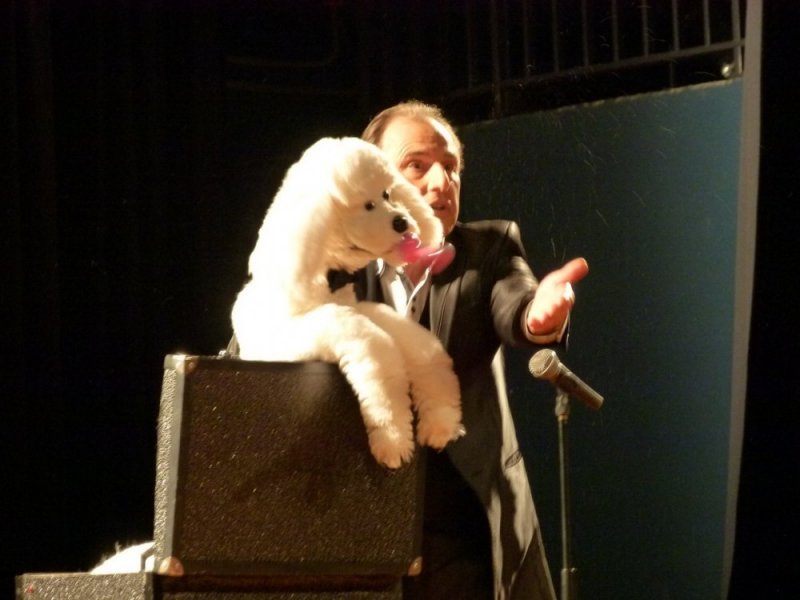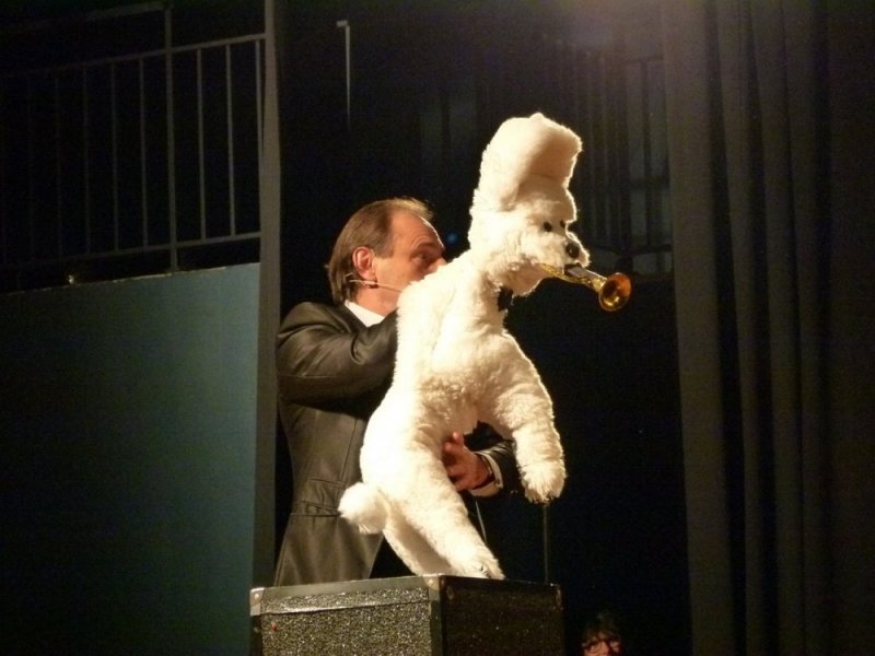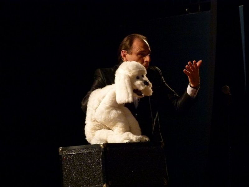 La magie a laissé place au ventriloque, accompagné de son drôle de caniche blanc, Handy, plus vrai que nature, malicieux et bavard. Il chante, raconte des histoires, joue de la trompette et en fait voir de toutes les couleurs à son « maître »…Moment attachant et troublant de réalisme.