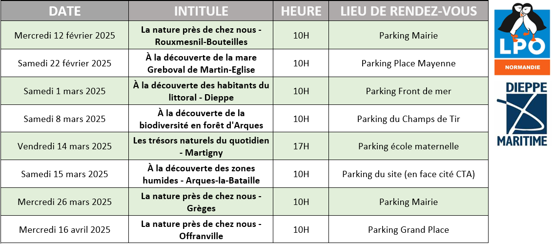 Et parce qu’ensemble, on va plus loin, ces actions sont menées en partenariat avec la Ligue pour la Protection des Oiseaux de Normandie (LPO-N). Alors, prêt(e) à explorer, apprendre et agir pour la biodiversité ?