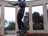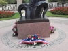 Sous un vent glacial, Mr Scott DESJARDIN directeur du cimetière de Normandie nous a reçus au Mémorial où s’élevait en son centre une magnifique statue de bronze représentant « l’esprit de la jeunesse américaine au-dessus des flots ». Avant d’assister à la cérémonie, c’est face au drapeau américain que nous avons écouté respectueusement l’hymne national français et américain. Monsieur le Maire, Jean-Claude GROUT et Madame BLOONE représentante de la famille américaine déposèrent ensuite une gerbe de fleurs au pied du monument du Mémorial.