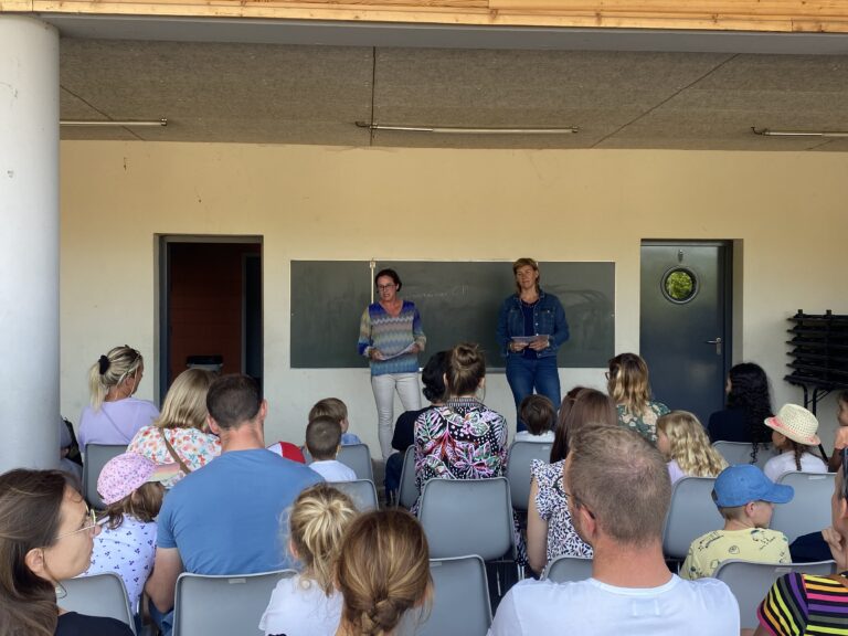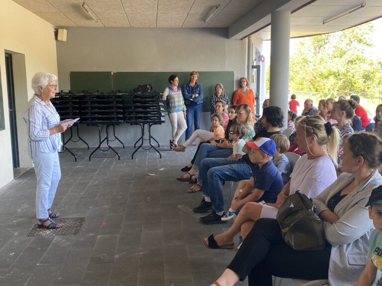 Celle-ci s’est déroulée le mardi 27 juin à 17h30, sous le préau de « La Salicorne », en présence de représentants de la municipalité, Anne-Marie ARTUR et Marie-Laure DELAHAYE adjointes. Notre maire, Monsieur GROUT retenu par une réunion communautaire a été excusé.